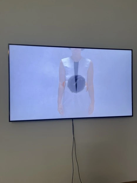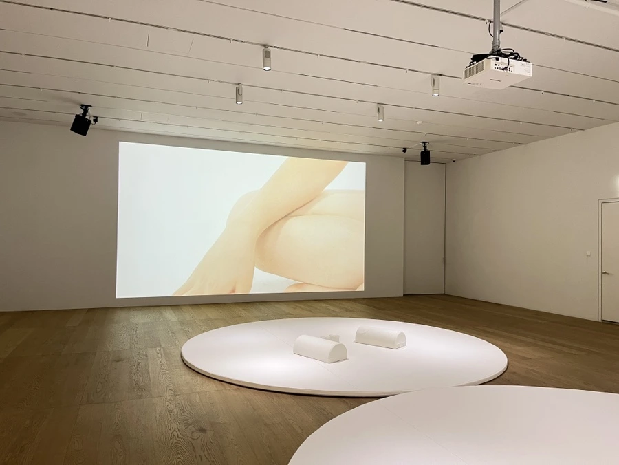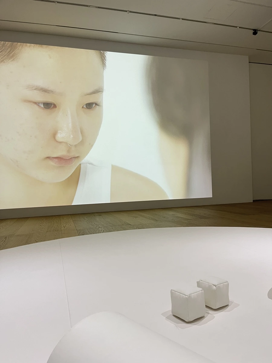 병원이나 심리치료실 같은 치유의 공간을 떠올리게 하는 이곳은 설치된 영상에도 흰색 옷을 입은 사람들이 등장한다.