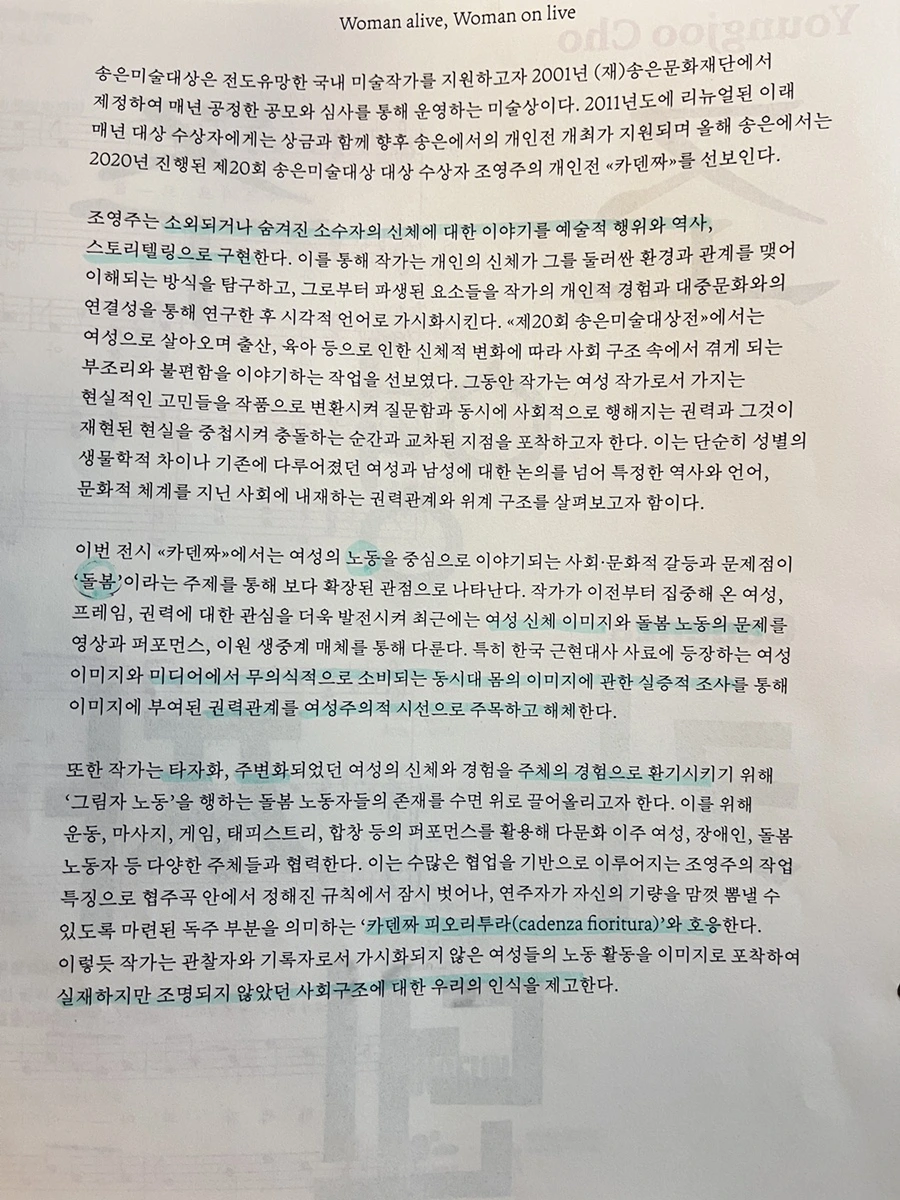 전시 리뷰|조영주 개인展 : 카덴짜 (송은 아트스페이스)