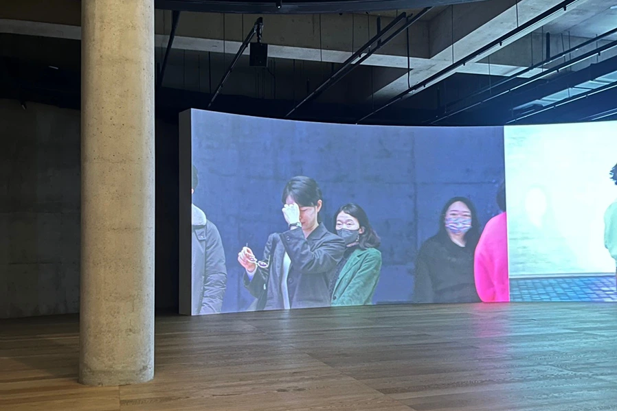 작품 속 스크린은 시공간을 넘나드는 제 2의 우주, 또다른 과거와 미래의 순간처럼 보였다.