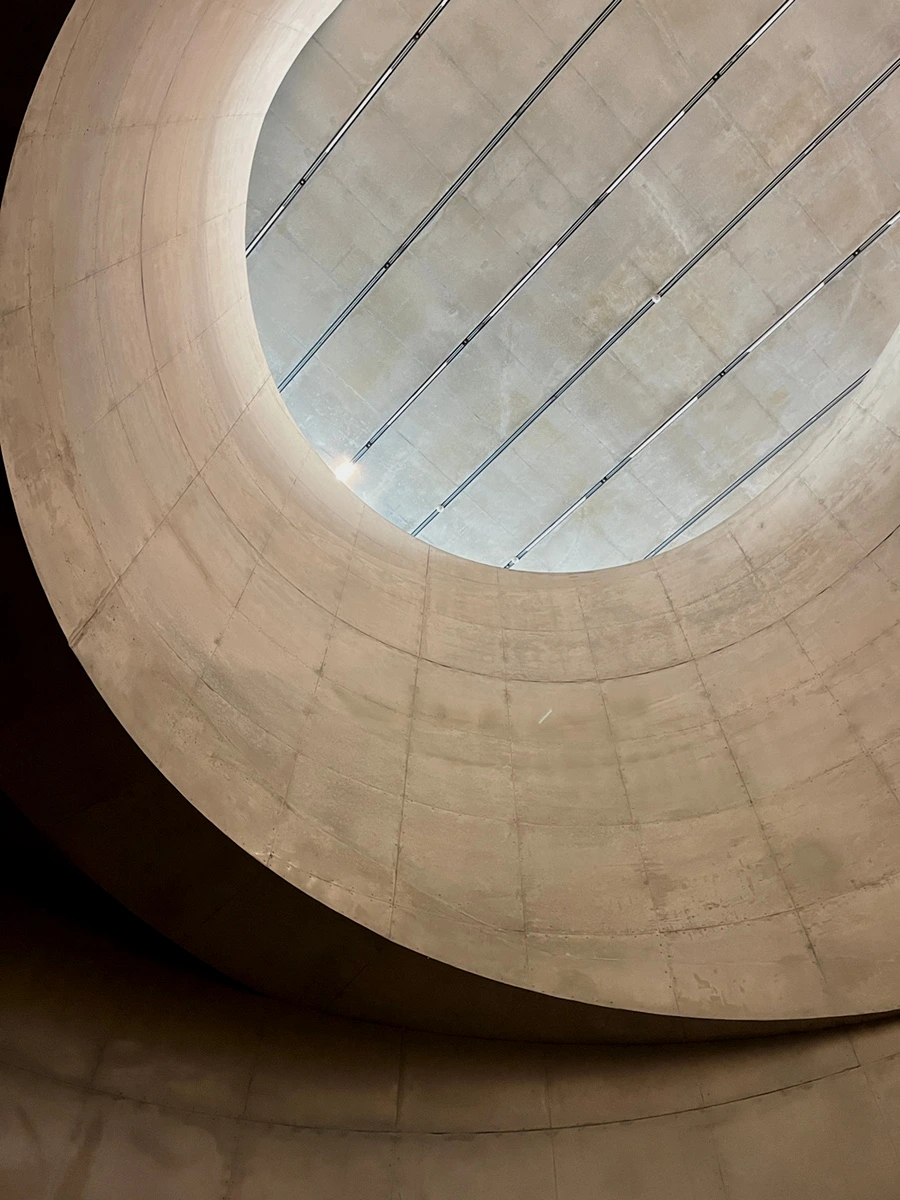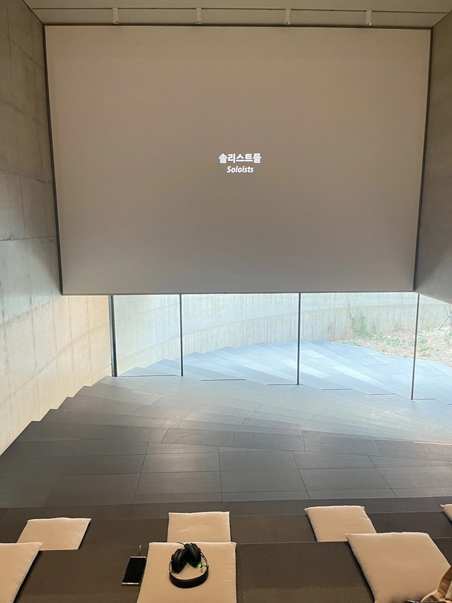 도착해서 구경해보니 역시나 멋지다. 특히 지하부터 로비까지 연결된 저 통로가 신비로움을 가중시켰다. 저 구멍을 통해 아래서부터 들려오는 작품의 음향 소리는 로비까지 잔잔하게 공명했고, 지상을 통해 들어온 자연광은 지하 전시장으로 자연스럽게 떨어져 작품을 은은하게 비추었다.
