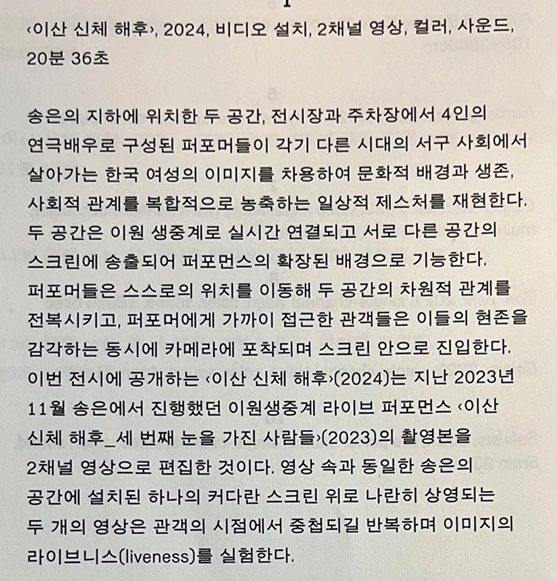 <이산 신체 해후> 2024, 비디오 설치, 2채널 영상, 컬러, 사운드, 20분 36초