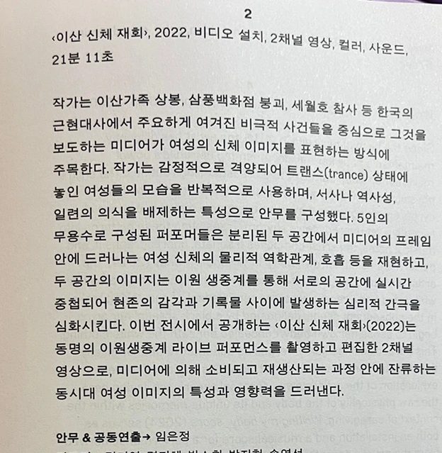 분명 어렵긴 한데, 일단 집중이 잘되고, 더 곰곰히 생각해보고 싶은 작품들이 많아서 좋았던 전시다. 작가의 메시지나 전달하고 싶은 것이 잘 느껴졌다고 할까..