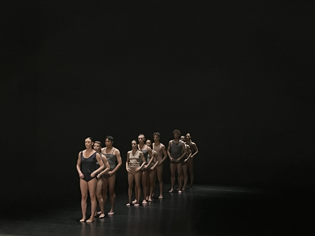 움직임은 개별적이고 고유하지만 동시에 연결되어 있다. 이들의 몸은 용처럼 연결되어 서로의 움직임을 복사한다. 앞 사람의 움직임은 뒷사람의 몸으로 전이된다. 움직임은 비슷하지만 같지 않다. 그렇게 15명의 움직임은 전이되고 변화하며 시시각각으로 복사되고 전달된다. 그렇게 파도처럼 끝없이 이어질 것만 같던 움직임이 소리의 신호와 함께 즉각적으로 사라진다. 긴장감 있는 음악이 무대를 가득 채우며 움직임들이 폭발하듯 무대의 양끝으로 달려 사라진다. 마치 우주를 보는 것 같은 기분이 들었다.