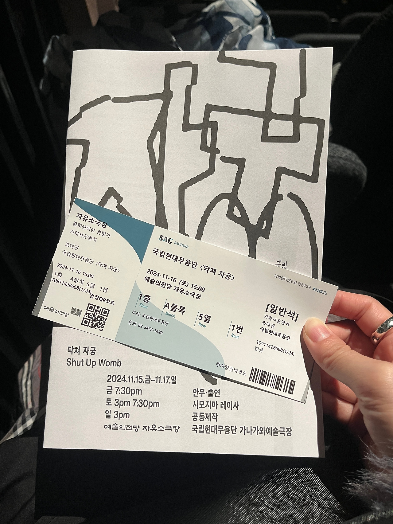 어쨌든 그래서 11월이 기다려졌다. <닥쳐 자궁>, 도대체 어떤 공연이란 말인가. 남들도 나랑 비슷하게 생각했는지, 표가 솔드아웃이었다. 그간 오디션도 열고 안무 워크숍도 열었던 지라 그것이 사람들의 호기심을 자극한 듯하다. 주변 사람들은 한 발 늦어서 예매도 못했다.