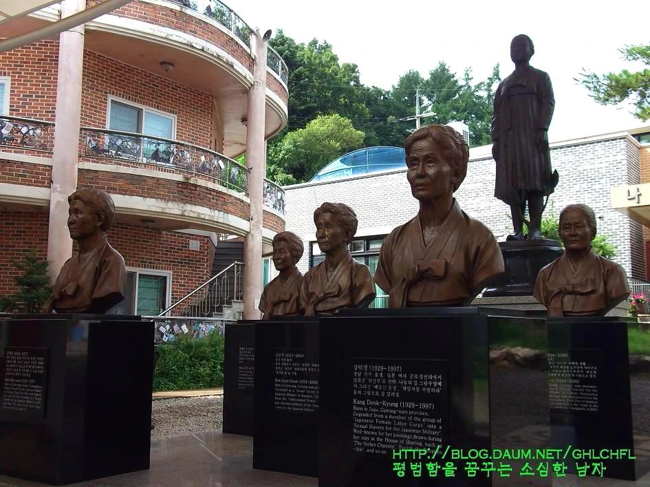 위안부 기념관 중앙에는 이렇게 할머니들의 흉상이 전시되어 있습니다. 우리는 자자손손 할머니들을 생각하며 끊임없는 자기반성과 함께 도덕적으로 성숙한 모습을 갖추기 위한 노력을 기울어야 할 것입니다. 과거로부터 교훈을 이끌어내지 못하고 똑같은 실수를 되풀이한다면 할머니들이 삼십 년 가까이 알리고자 노력한 숭고한 뜻을 저버리는 어리석은 사람이 될 수밖에 없습니다. 또한 우리들이 앞으로 겪어야 할 아픔과 고통이 무엇인지 역사에서 쉽게 찾아볼 수도 있을 것입니다.