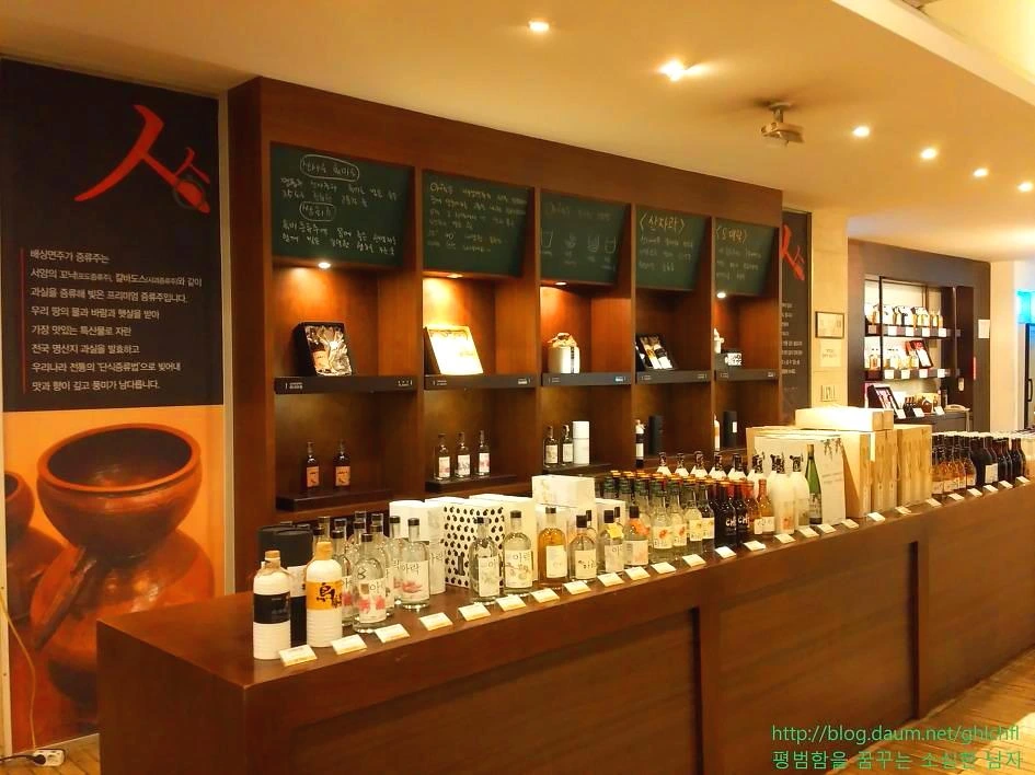 산사원 입장료를 내고 받은 잔은 이곳에서 무료 시음하는 도구로 사용됩니다. 산사원에는 배상면주에서 생산되는 다양한 술을 시음할 수 있는 공간이 마련되어 있습니다. 술을 잘 하지 못하는 저로서도 다양한 술의 향을 맡으며 조금씩 맛을 보는 특혜는 즐거웠습니다. 마치 소믈리에가 된 것처럼 향을 맡고 맛을 음미하며 나름 평가도 내리는 시간을 보냈습니다.