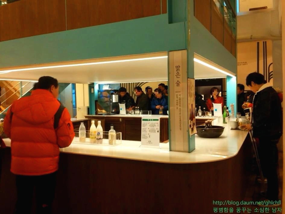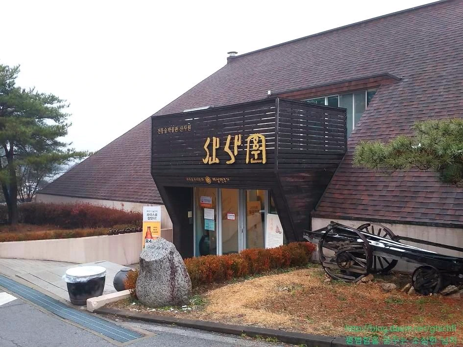 그러나 얼마 뒤 관광버스에서 내린 중년의 아저씨와 아줌마들이 들어오는 순간 분위기는 급변해버렸습니다. 우르르 몰려오는 일행 중에는 이미 어느 정도 얼큰하게 취하신 분들도 여럿 보였습니다. 시음코너에 준비된 술을 마구 마시며 큰 소리로 떠들거나, 아예 술병을 들고 다른 장소로 이동하여 술을 따라 마시는 모습은 눈길을 찌푸리게 만들었습니다. 자녀와 함께 있던 저희로서는 어른들의 무질서하고 막무가내적인 모습을 아이들에게 보인 것 같아 부끄럽기만 했습니다. 그러나 이런 일들이 비일비재한지 직원들은 화도 내지 않고 웃으면서 술병은 가져가지 말고 드시라고 설명을 하고 있었습니다. 산사원의 친절한 직원들 모습을 보며 불쾌함이 가득했던 저의 얼굴은 조금씩 펴질 수 있었습니다.