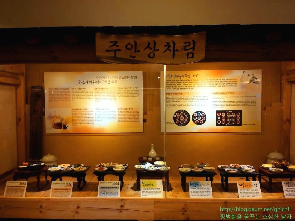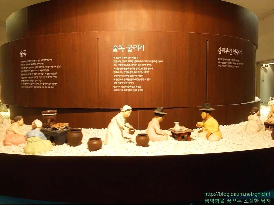 2층으로 올라가면 빙글빙글 돌아가며 술과 관련된 이야기들을 전달해주는 재미난 모형이 있습니다. 빽빽한 글씨로만 술 빚는 과정을 설명했다면 재미도 없고 이해하기 어려워 포기했을 것입니다. 그러나 제가 좋아하는 인형들로 설명을 재현하고 있어 쉽게 이해하면서 배울 수 있었습니다. 술을 만드는 과정을 보니 첫 번째 순서가 마음을 가다듬어 잡스러운 것들이 꼬이지 않도록 하는 것에서 시작합니다. 그 이후 재료를 준비하고 누룩을 딛는 것으로 1단계가 끝이 납니다. 그 이후 술을 담그고 발효하기를 기다리는 시간을 갖습니다. 술이 다 발효되면 소주를 내린 이후 탁주를 거릅니다. 그 이후는 주안상을 차리고 마음에 맞는 사람들과 담소를 나누며 잔을 기울이는 것으로 끝이 납니다.