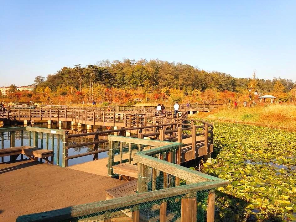 푸른 수목원 내 갖추어진 생태습지와 나무다리