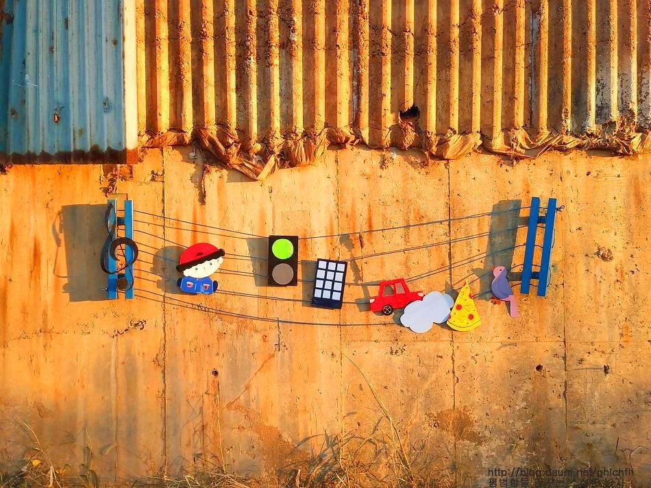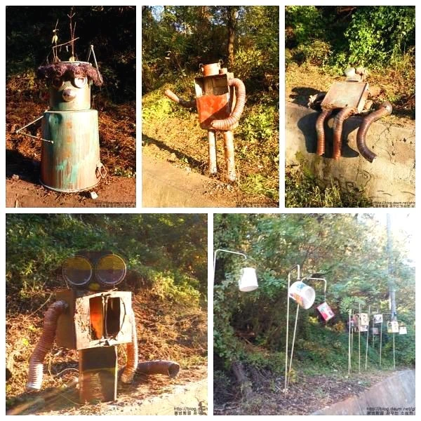 철길 옆에는 재활용품으로 만든 작품들이 여러 개 있습니다. 잘 만들어지지 않고 무심코 버려진 듯 보여 더욱 정감 가는 작품들이었습니다. 많은 연인 또는 가족끼리 철길과 작품을 배경으로 사진을 찍으며 담소를 나누는 모습은 항동 철길 어디서든 쉽게 볼 수 있었습니다. 각박한 도시 속에서 잠시나마 일탈하여 지인과 진솔한 대화를 나누며 걷기에 항동 철길은 최적의 공간을 제공해주고 있습니다.
