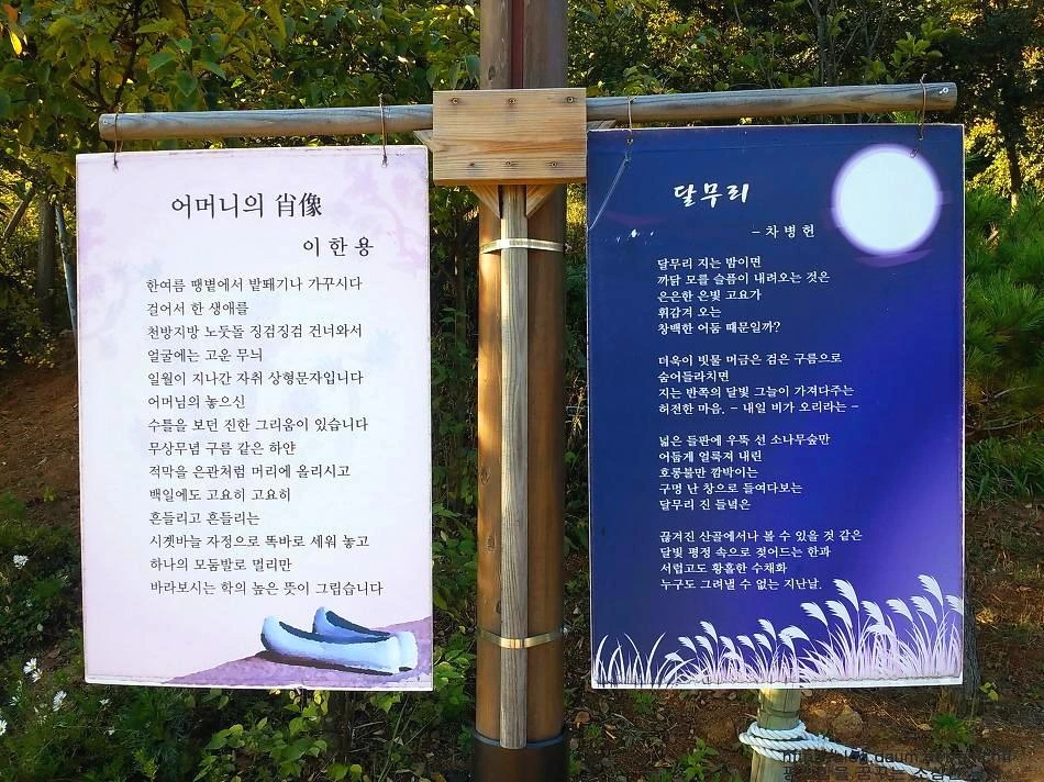 물고기 사냥을 끝낸 새가 날아간 후 가족들과 두런두런 이야기를 나누며 사진도 촬영하며 수목원을 걸었습니다. 수목원은 시를 읽으며 천천히 걸을 수 있도록 배려를 해놓고 있었습니다. 시를 보자 아이들에게 시 읽는 아빠의 멋진 모습을 보여주려고 잠시 멈추었습니다. 고상한 척 시를 읽다 보니 시문구가 좋아서, 어느새 진지모드로 시를 읽고 있었습니다. 평소에 시를 읽지 않지만, 수목원에서 본 시는 가을에 잘 어울렸습니다. 시를 다 읽고 주변을 살펴보니 가족들은 이미 저 멀리서 장난치며 이동하고 있었습니다.