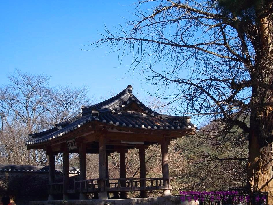 소수 서원으로 가는 길목의 얼어붙은 하천 옆으로 정자가 눈에 뜨입니다. 이 정자의 이름이 취한대로 퇴계 이황이 공부하다 지친 학생들이 쉴 수 있도록 만든 장소입니다. 쉬지도 못하고 공부를 해야 하는 오늘날과는 다르게 휴식의 가치를 이미 알고 실천했음에 감탄하게 됩니다. 지금의 취한대는 복원된 건물로 고적함을 주지는 못하지만 그 위치가 가히 절묘합니다. 취한대는 앞으로는 시원하게 흐르는 죽계천의 물소리를 들으며 뒤편의 낮으막한 야산에서 불어오는 바람에 마음속의 번잡함을 내려놓고 휴식을 취하는데 부족함이 하나 없어 보입니다.