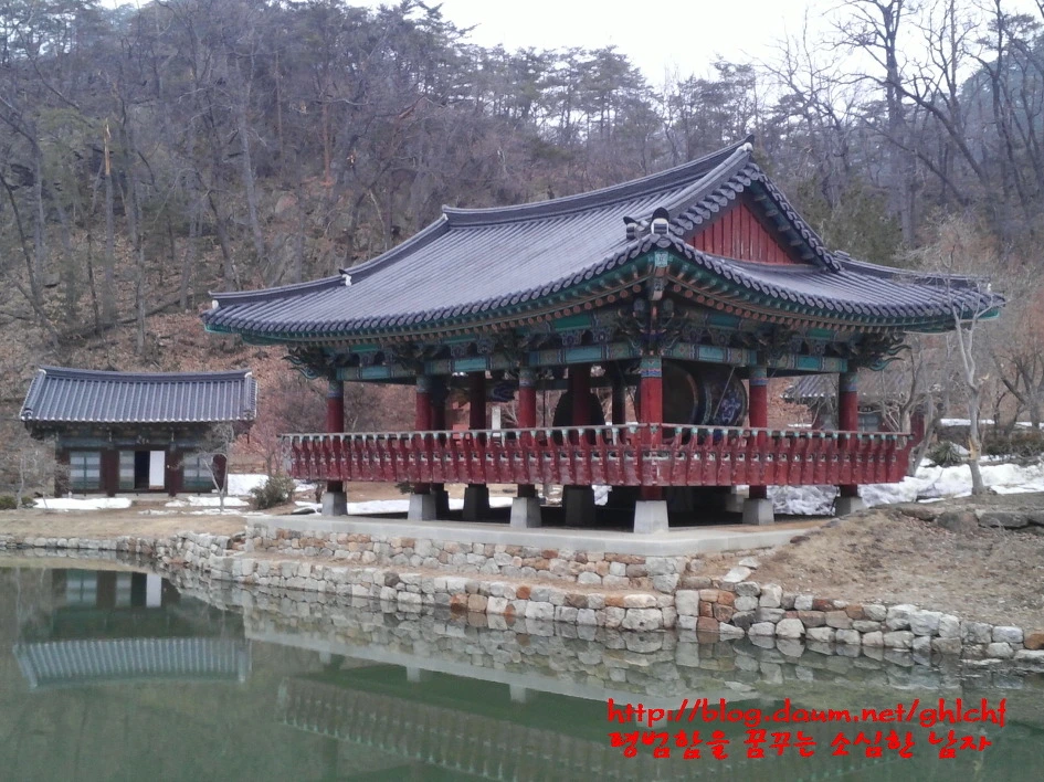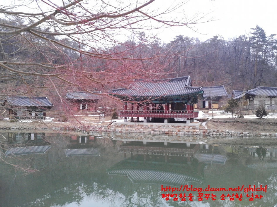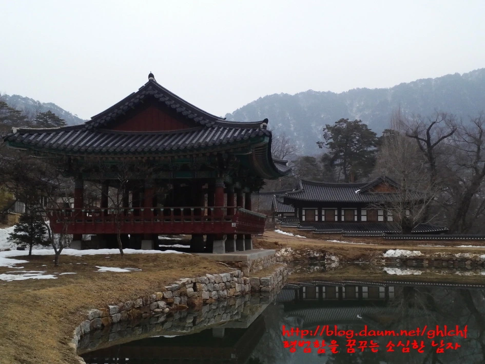 법영루는 오래된 전각이 아니지만 산을 배경 삼아 불영지에 비추어지는 모습이 가히 절경이라 할 수 있습니다. 초록을 다 떨구고, 있는 그대로의 겨울 천축산과 불영사 전각들이 불영지에 오롯이 비추어지는 모습은 흡사 속살이 살짝 비치는 얇은 한복을 입은 아리따운 여인처럼 매혹적인 자태를 풍깁니다. 법영루가 어디서나 볼 수 있는 평범하고 흔한 전각에서 벗어날 수 있는 것은 주변 풍경이 있기에 가능했을 것입니다. 그래서, 천축산과 불영지로 인해 생명이 불어넣어지고 고혹적인 아름다움을 지니게 된 법영루는 불영사를 대표하는 전각으로 자리매김할 수 있었습니다.