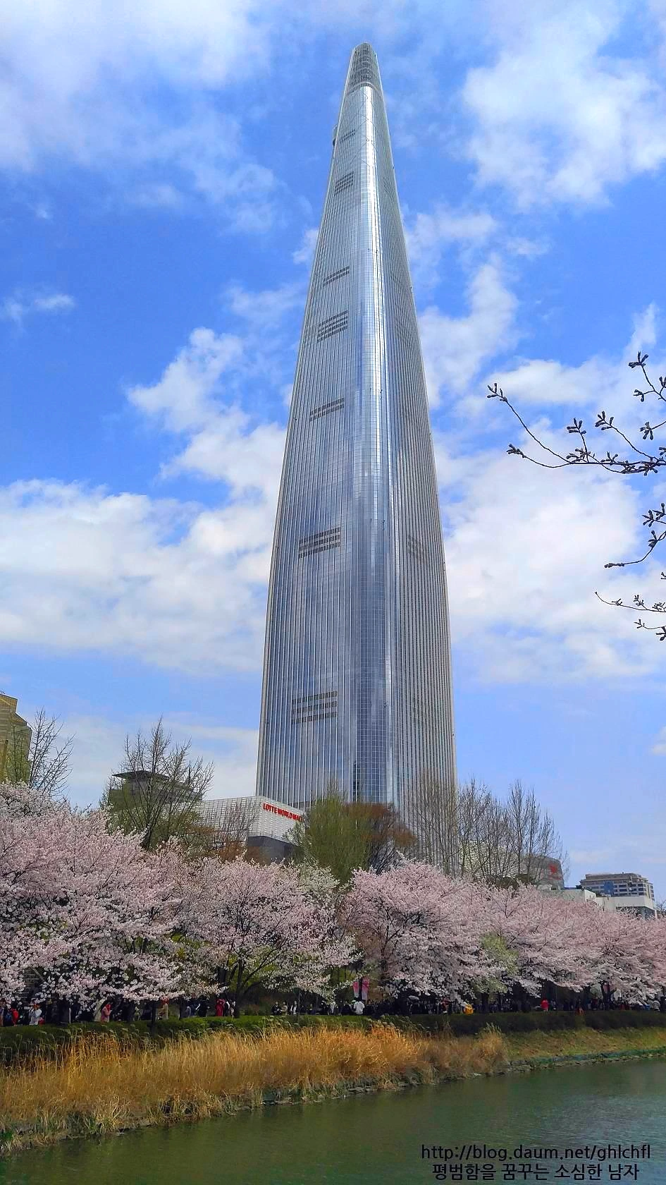 여의도 주변에 살다 보니 석촌호수로는 자주 올 기회가 많지 않습니다. 그러다 보니 서울에 살면서도 잠실 롯데월드타워를 가까이서 보지 못하고 있다가, 이번 기회에 두 눈으로 처음 보게 되었는데 제 마음에 쏙 들게 예뻤습니다. 그래서 석촌호수 벚꽃축제에서 가장 많이 찍은 사진이 롯데월드타워였습니다.