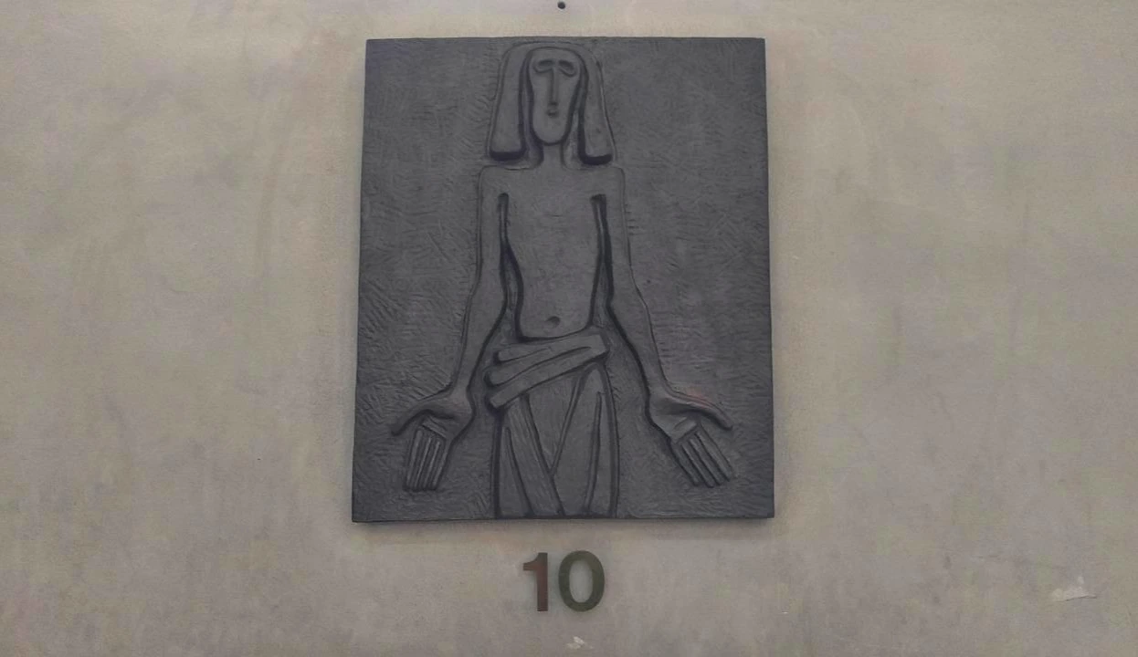 사제관 앞 '사형선고받으심'이란 제목의 작품