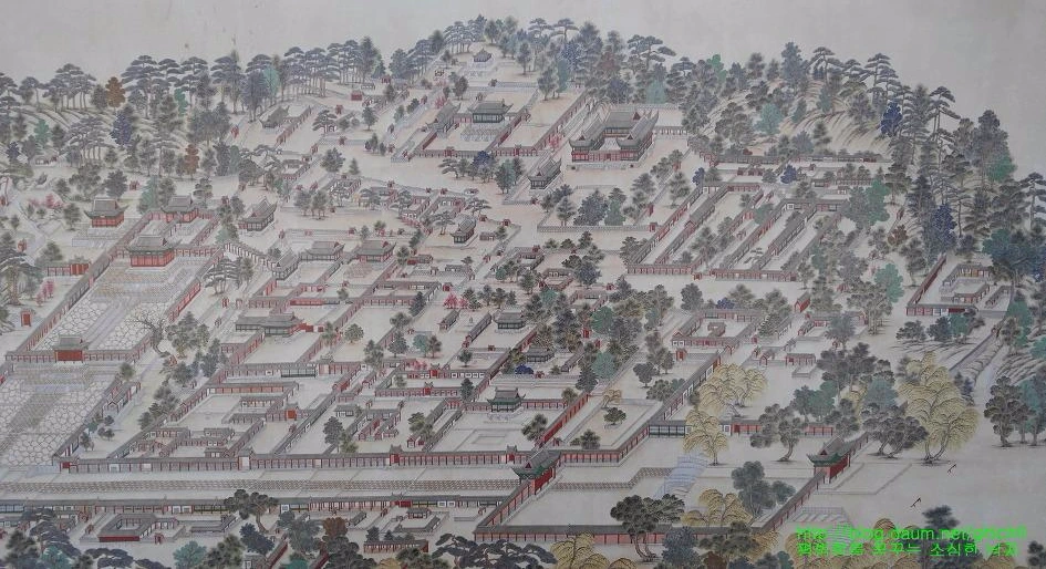 위의 사진이 바로 경희궁의 옛 모습입니다. 그림을 통해서도 알 수 있듯이 수많은 전각들로 이루어진 아름다운 궁궐이었음을 확인할 수 있습니다. 오늘날의 경희궁의 모습과 비교해볼 때 우리에게 안타까움을 줍니다.