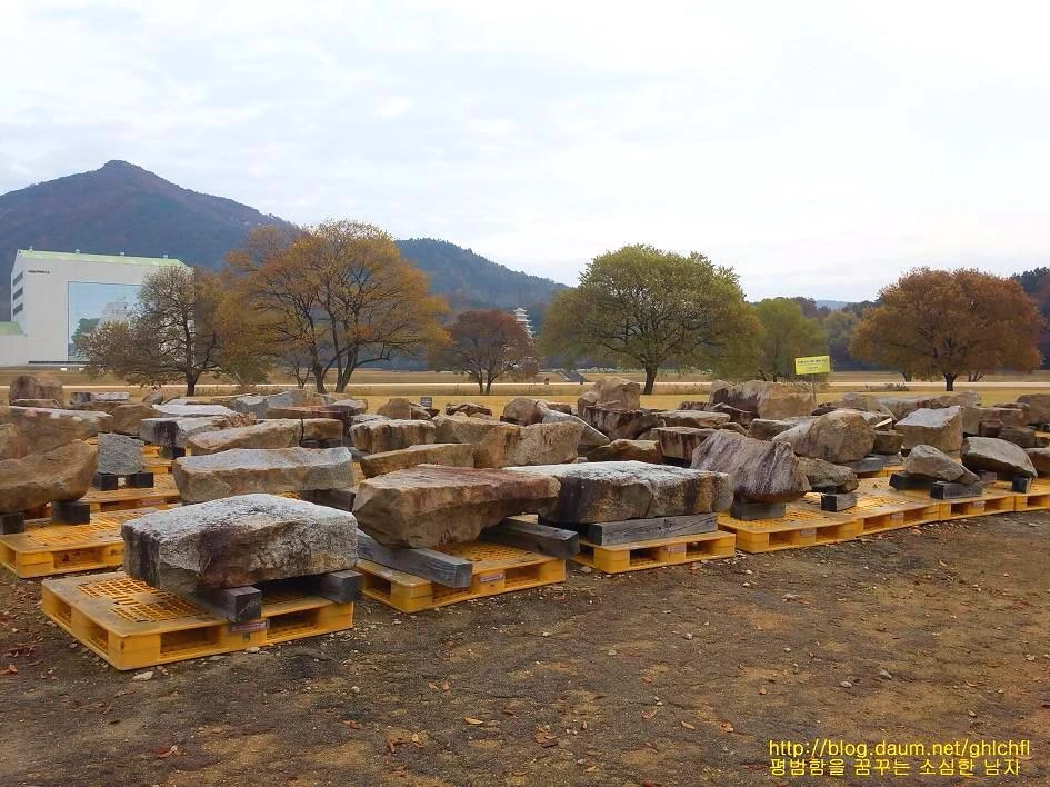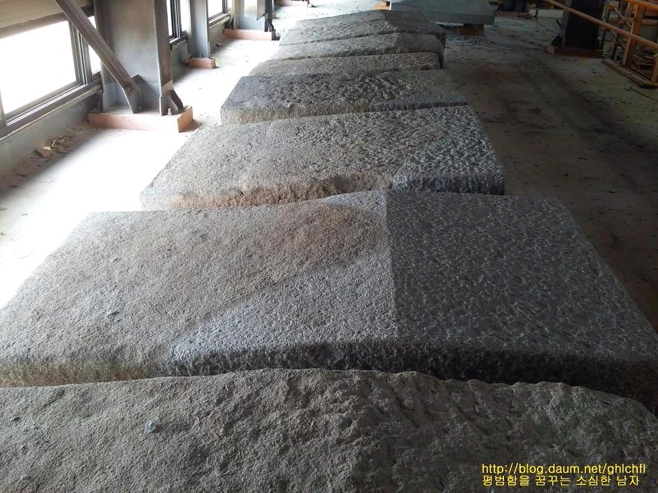 석탑을 올리는데 2,700톤이 들어갔다는 것이 솔직히 믿기지 않았습니다. 눈으로 석탑을 볼 때에는 많은 양의 석재가 들어갔는지 알 수 없었는데 실제로 해체시켜놓은 것을 보니 어마어마한 양이 들어갔음을 알 수 있었습니다. 사진에서 보이는 돌들이 미륵사지 석탑을 해체해놓은 석재의 일부로, 이것만 해도 어마한 양으로 직접 미륵사에 가서 보시게 되면 모두 놀랄 수밖에 없을 것입니다.