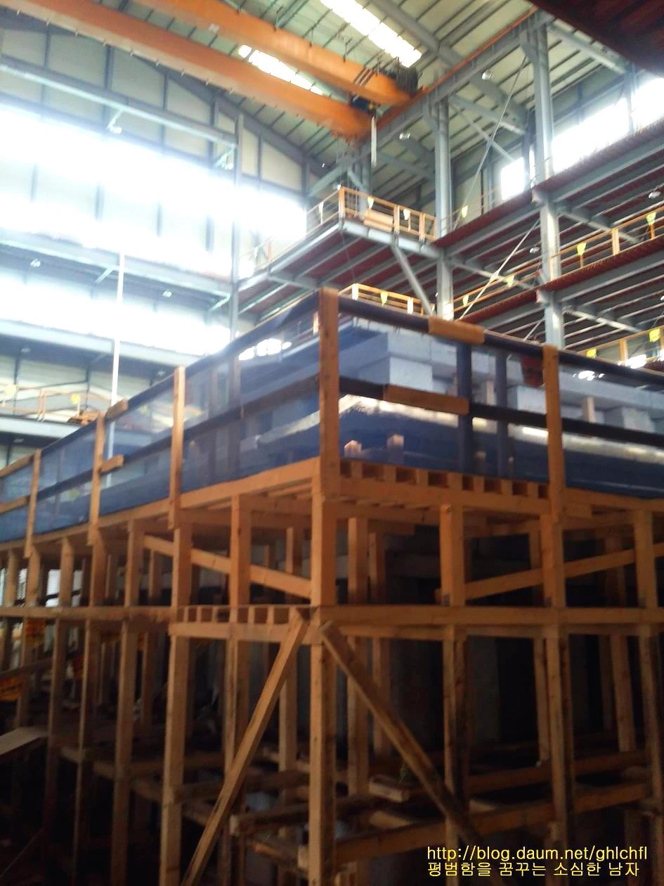 미륵사지 석탑(정확히는 서탑)을 복원하는 장소에 들어서면 1층과 2층에서 복원되는 모습을 관람할 수 있도록 구성되어 있습니다. 미륵사지 석탑이 워낙 많이 훼손된 상태이기에 석탑의 정확한 층수를 현재로서는 알 수 없습니다. 탑의 모형과 신라 황룡사 9층 목탑을 참고 삼아 미륵사지 석탑이 9층이 아닐까 추정하고 복원하고 있습니다. 제가 방문했을 때에는 미륵사지 석탑 2층을 복원하고 있었습니다.