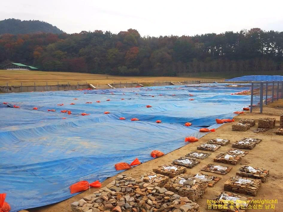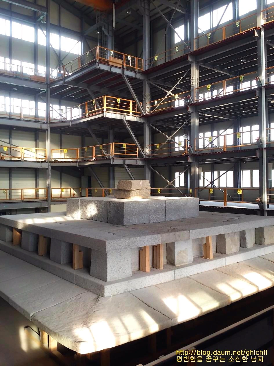 복원 과정을 거치고 있는 미륵사지 석탑 자재