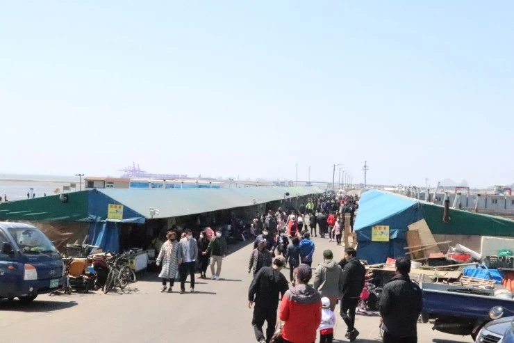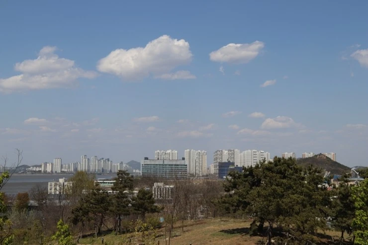 이외에도 중앙 공터에는 아낙네들이 불 터 옆에서 무언가를 만들고, 건너편에는 거대한 나무를 옮기는 모습이 충실하게 재현되어있다. 어린이들이 책에서 보던 선사시대의 모습을 실물 크기로 만나볼 수 있다는 매력에 끌려서일까? 어린 자녀를 둔 부모들이 많이 보인다. 선사시대를 설명하는 부모, 잔디 위를 뛰어다니는 아이가 넘어질까 쫓아다니는 부모를 어렵지 않게 볼 수 있다. 선사체험 마을 뒤로 올라가는 꼬불꼬불한 길은 짧은 거리지만, 여러 꽃을 보며 천천히 올라가기에 부족함이 없다. 천천히 작은 산에 올라가면 체험 마을에서는 느낄 수 없었던 강한 바람을 만나게 된다. 바다에서 불어오는 바람에 소나무들이 연신 우는 소리가 들린다. 지척에 두고도 어쩜 이렇게 날씨가 다른지 놀랍기만 하다.