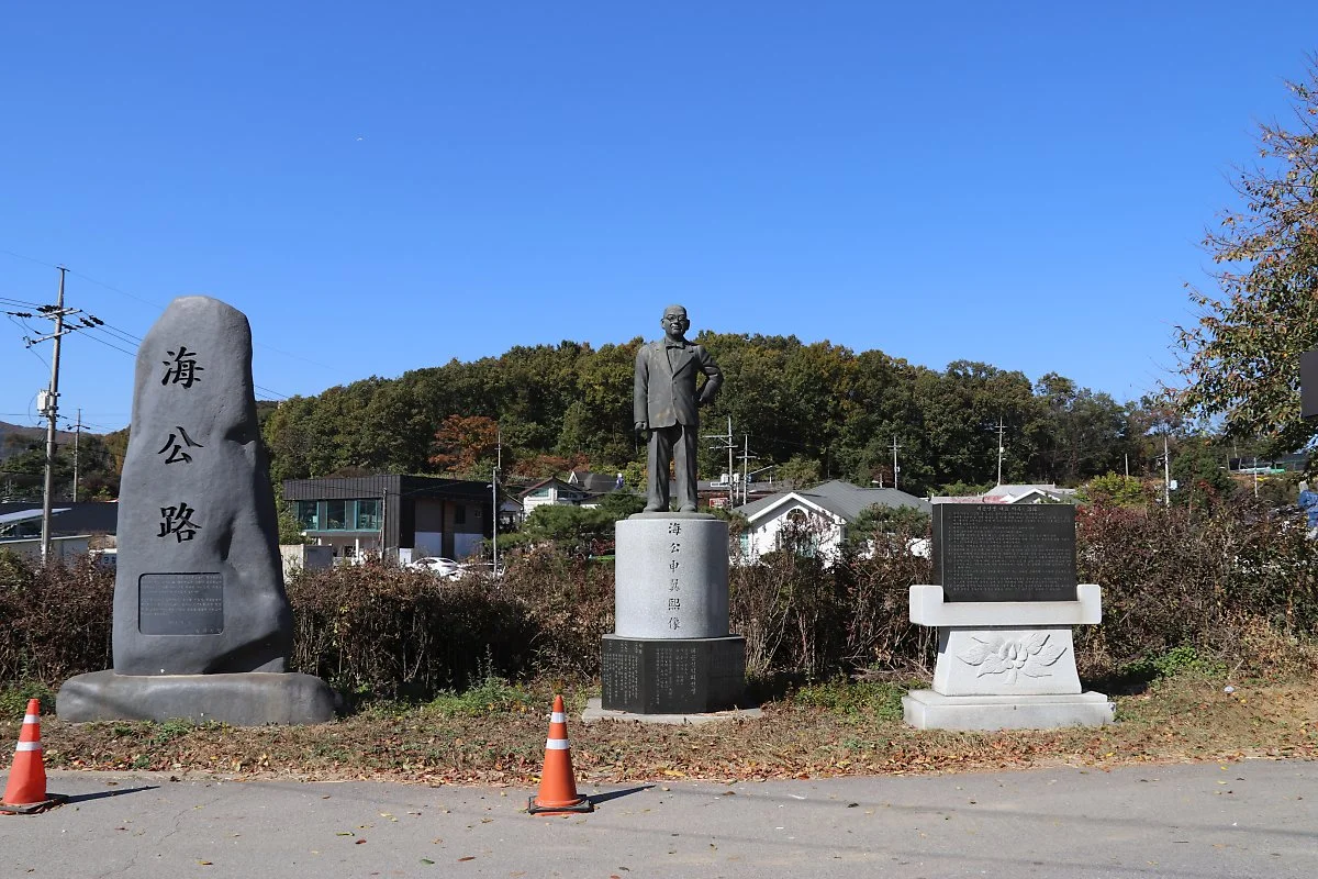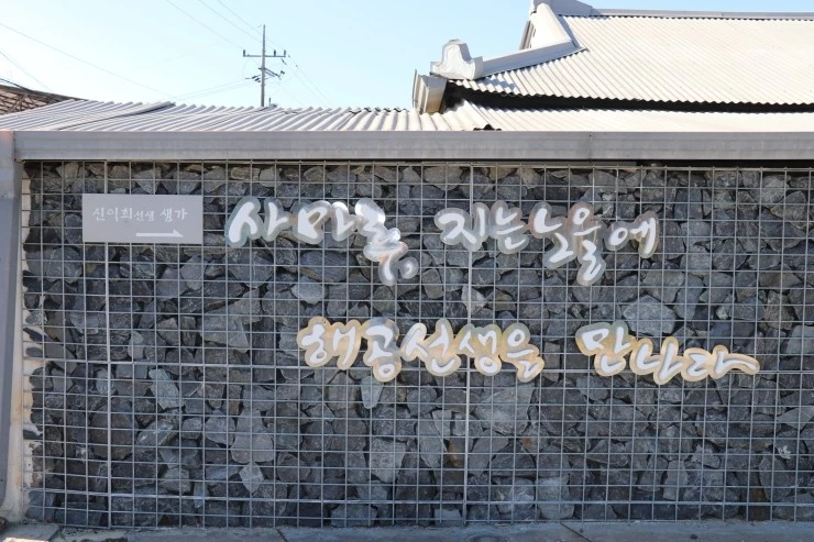 생가로 들어가기 전 입구에 있는 해공로 비석과 동상 그리고 어록이 적혀있는 비석을 카메라에 담기 위해 차에서 내렸다. 카메라를 들고 셔터를 누르는 동안 정차된 버스에서 몸이 불편해 보이는 노인이 내렸다. 그 옆으로 노인을 부축하는 버스 기사가 있었다. 그렇게 차에서 내린 두 사람은 외지인인 나만 모르는 이야기를 한동안 나누었다. 그리고 노인이 떠나간 후 버스 기사는 차 문을 열어두고 바로 앞에 있는 마을회관으로 향했다. 아무래도 차량 배차시간까지 시간이 남는 듯했다. 버스 기사분은 마을회관 슈퍼를 다녀온 뒤 회관 앞 공터에 있는 운동기구를 이용하는 모습에서 향수가 느껴졌다.