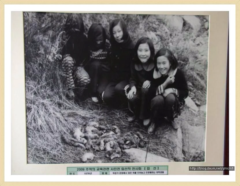이승복 생가 옆으로 강원도 교육청에서 만들어놓은 전시장이 위치하고 있습니다. 강원도 지역 학생들의 옛 모습을 담은 사진들이 전시되어 있었습니다. 전시관은 어른들의 경우 향수에 잠기고, 어린아이들은 '검정고무신'을 통해 기억하는 60~70년대를 확인하며 가족 간의 소통의 장을 열 수 있는 공간이었습니다. 여러 사진 중에 유독 눈길이 가는 몇 장이 있었습니다. 그중 첫 번째는 너무나 예쁘고 귀여운 다섯 소녀가 카메라를 보며 해맑게 웃고 있는 사진이었습니다. 맨 오른쪽의 아이는 서구적인 외모에 해맑은 미소가 너무 예뻤고, 가운데 소녀는 사춘기에 접어들었는지 어른스러운 모습을 보이고자 하는 모습이 귀엽기만 합니다. 사진 속 아이들은 현재 50대의 중년이 되어 어떤 모습으로 살아가고 있을지 궁금해집니다. 누군가와 예쁜 사랑을 나누며 결혼하고 아이를 낳아 살아가는 모습도 궁금하지만, 무엇보다 현재도 저 해맑음 모습이 남아있을지가 너무나 궁금합니다.