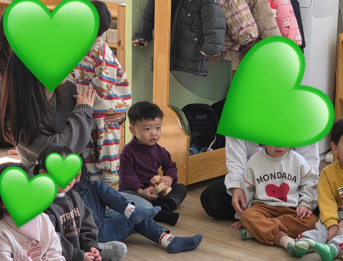 처음보는 아이들과 다른 부모들, 선생님의 틈에 거리낌없이 앉는다.