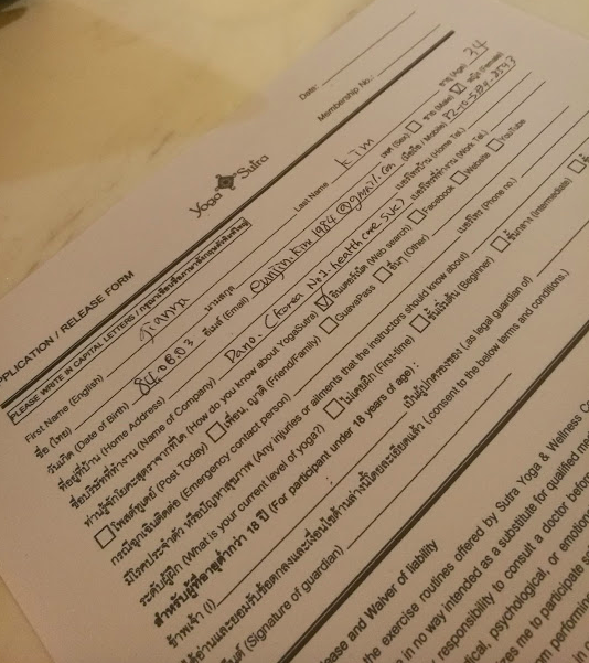 온라인에서 등록을 하고 가면, 첫 수련은 200바트 (약 7천 원)에 할 수 있다. (대부분 방콕 요가는 약 500~600바트로 물가 대비 비싼 편이다)