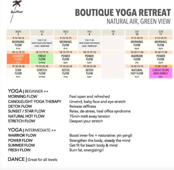 사실, 홈페이지에 정보가 별로 없어서, 시간표만 슬쩍 체크하러 갔는데, 운 좋게도 나의 방콕 최애 티쳐 'note'가 elements, yoga 101, 그리고 여기서도 수업한다는 걸 알게 되었다.