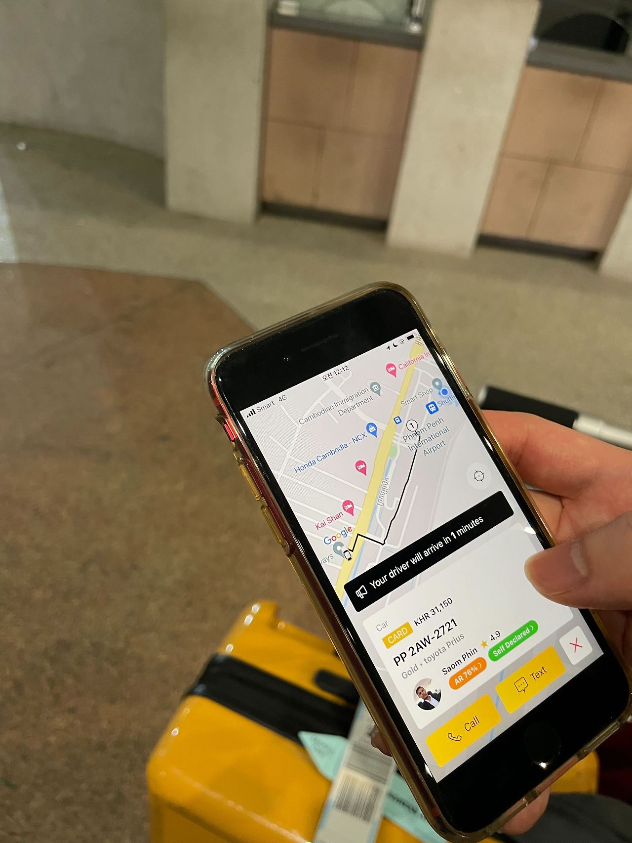 프놈펜 국제공항에서 TADA로 일반 자가용 부르기 (TukTuk 뿐만 아니라 4륜 차도 부를 수 있다. 공항 오갈 땐 4륜 차로!)