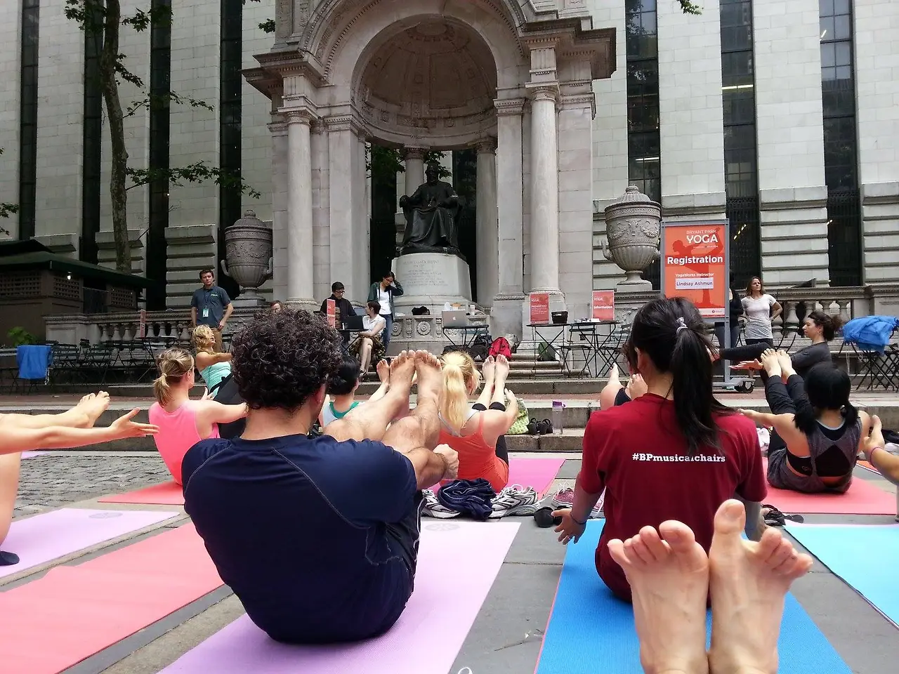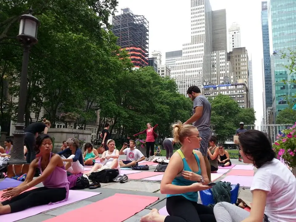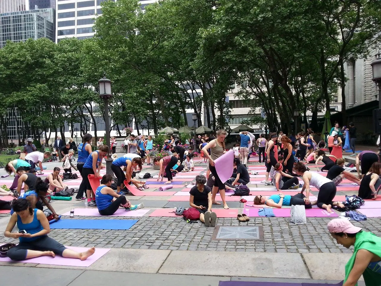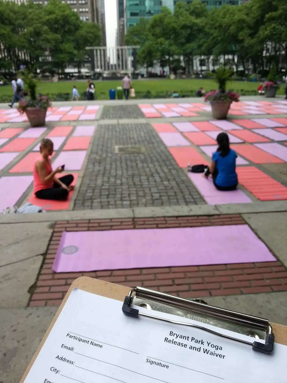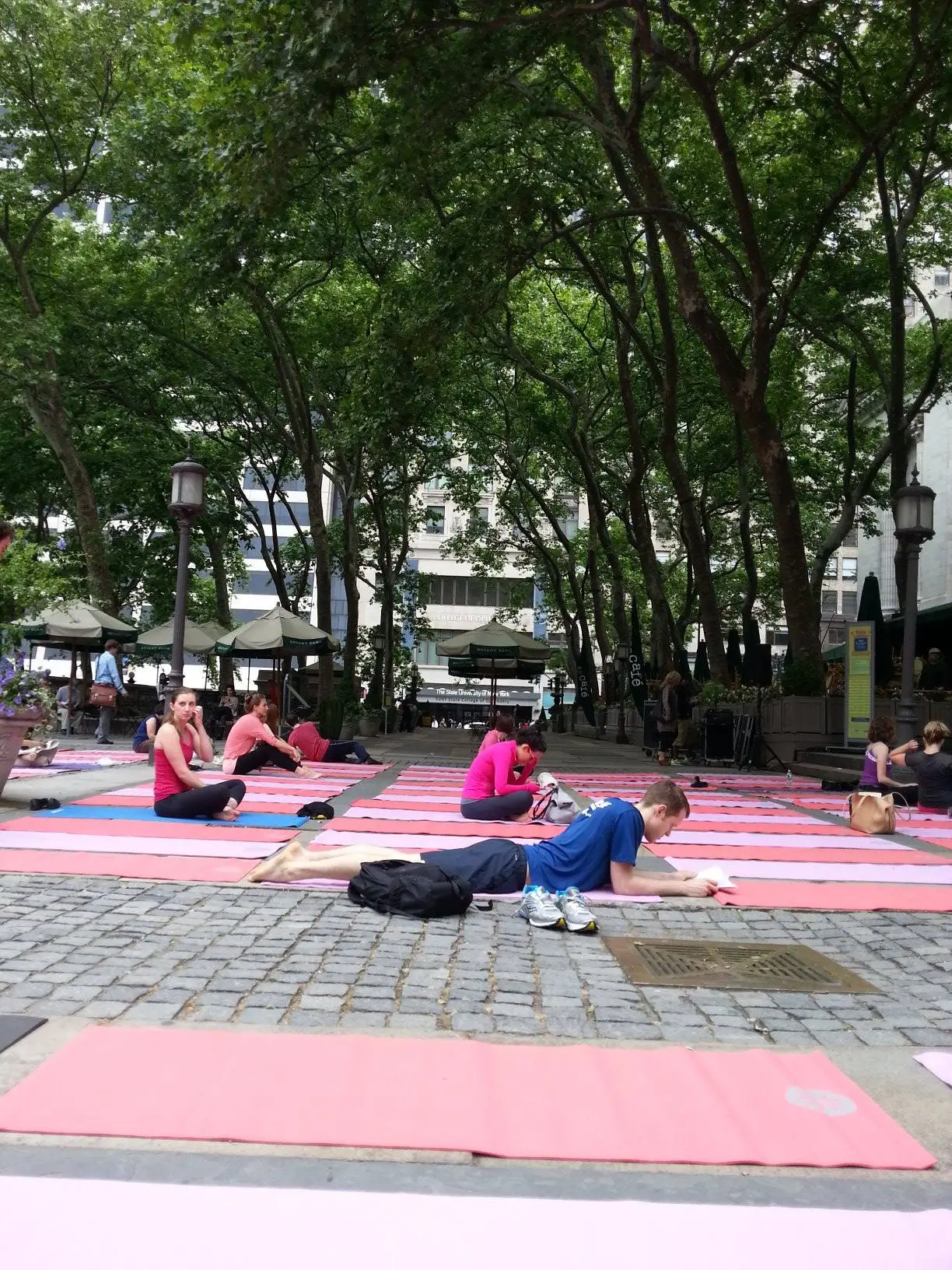 오며 가며 걸어 다니다가, 브라이언트 파크에서도 요가 수업이 있다는 걸 알게 되었다. 뉴욕 한복판의 공원에서 요가라니! 얼마나 사람들이 모일까, 어떤 분위기일까 너무나 궁금했고 무조건 참여해야겠다는 생각으로 찾아갔다.