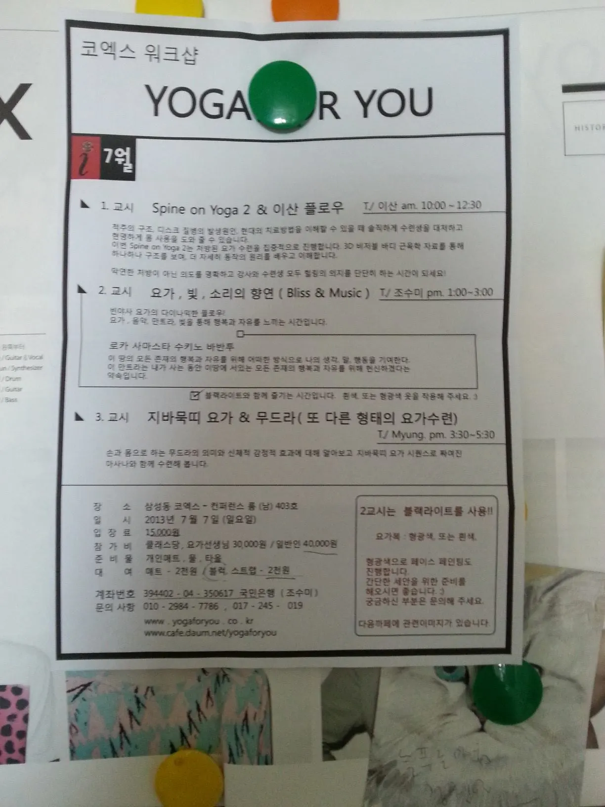 지바묵티는 지바 + 묵티의 합성어로, 지바는 영혼 그리고 묵티는 해방을 의미한다고 한다. 다른 요가 수업과 전반적인 시퀀스는 비슷한데, 작은 피아노 건반같이 생긴 악기의 연주와 함께 챈팅을 하는 것 그리고 바가바드 기타라는 요가 경전에 나온 이야기를 들을 수 있는 것이 좀 다른 점으로 느껴졌다. 마치 교회에서 성경 말씀을 듣고, 찬송가를 부르는 듯한 느낌이 이와 비슷하지 않을까? 하는 생각을 했다.