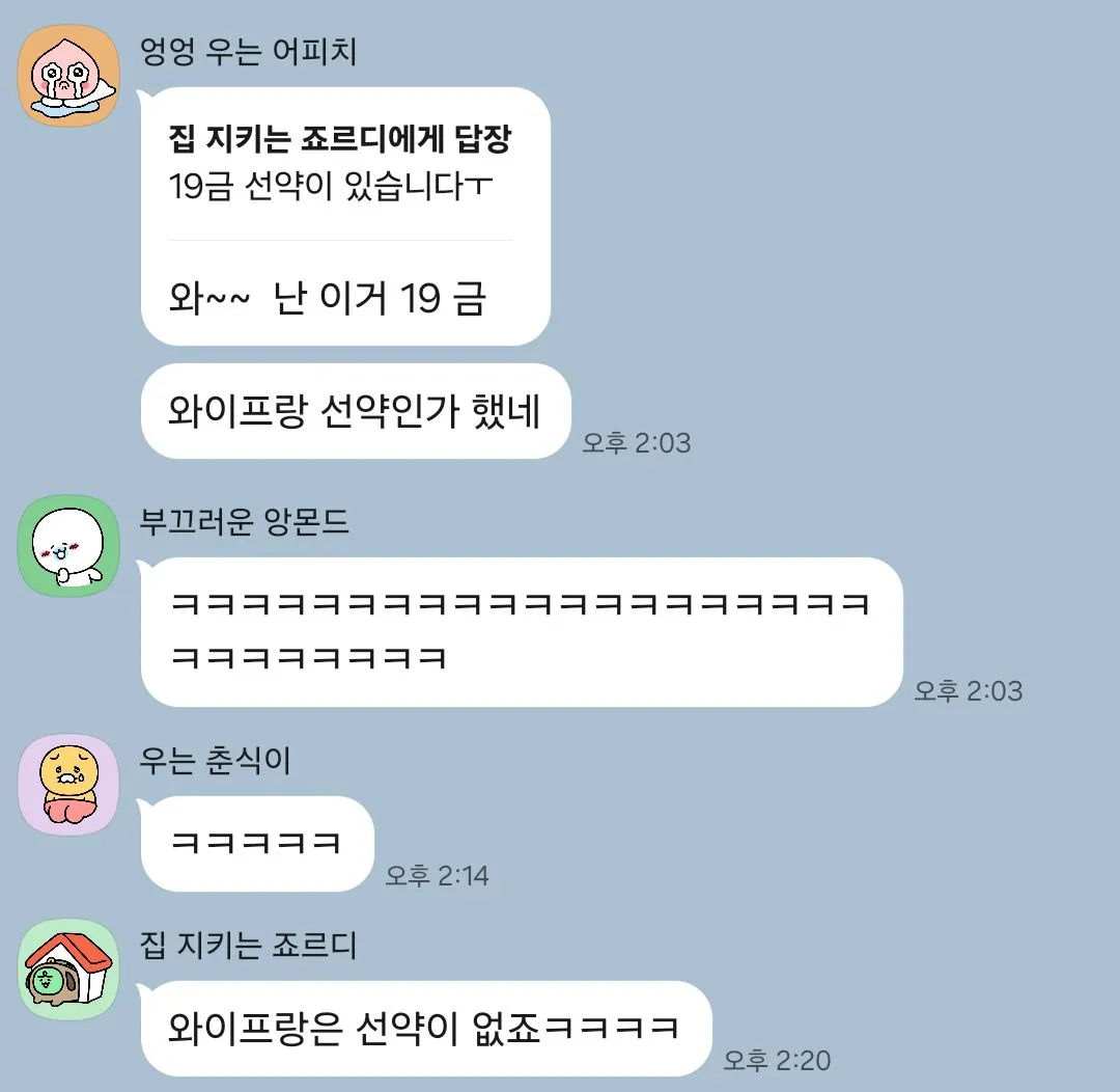단톡방이 순식간에 뒤집어졌다. ㅋㅋㅋㅋㅋ