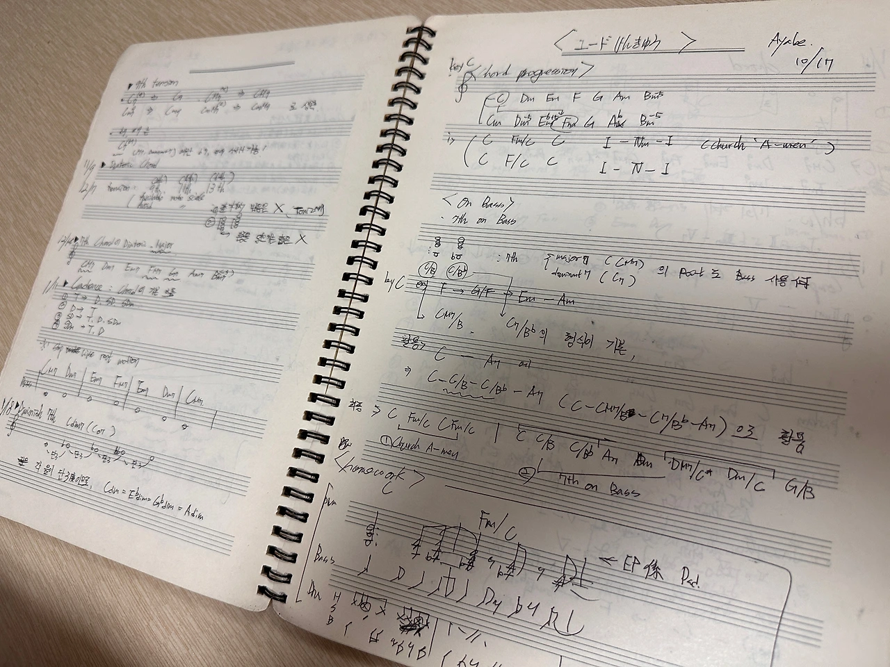 필자의 경우 아직까지 작사, 작곡은 펜과 종이를 쓰고 건반과 기타로 완성하고 있다