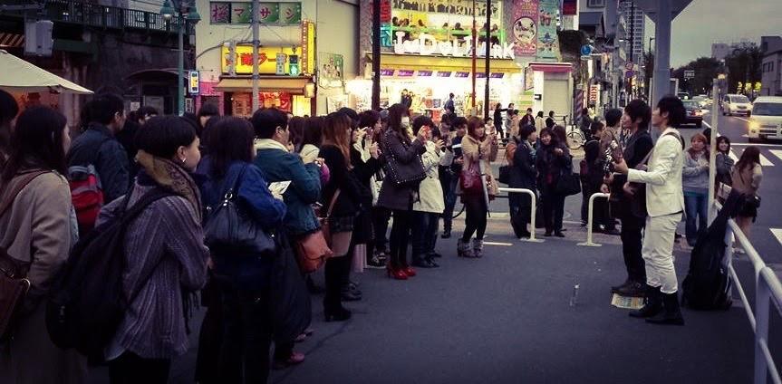 거리공연의 신화인 유즈(ゆず)는 거리 공연에서 그들의 목소리를 듣기 위해 엄청난 사람들이 몰렸고 거리공연은 보는 이들도 어느 정도 이해를 하는 문화적인 행위라고 생각하는 이들이 많았다.
