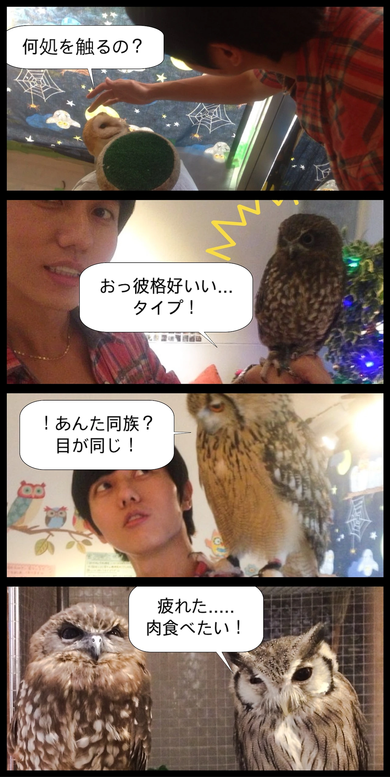 여러 종류의 올빼미들을 어깨에 얹을 수 있고 순한(?) 애들은 만질 수도 있다.