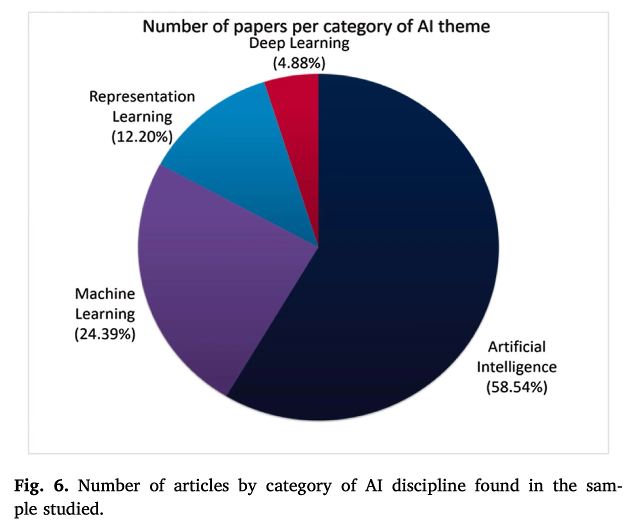 다양한 연구들이 AI와 연결된 의학(D’Souza, Prema, & Balaji, 2020; Ebrahimighahnavieh, Luo, & Chiong, 2020; Foulquier et al., 2018; Kedra et al., 2019; Wang, Wang, & Lv, 2019; Orgeolet et al., 2020), 회계학 (Henrique, Sobreiro, & Kimura, 2019; Sezer, Gudelek, & Ozbayoglu, 2020); 컴퓨터 과학 (Moghekar & Ahuja, 2019; Zheng, Chien, & Wu, 2014; Wang, Chen, Li, & Vargas, 2019) 통신학 (Hassanien, Darwish, & Abdelghafar, 2019; Morocho-Cayamcela, Lee, & Lim, 2019); 교육학 (Alenezi & Faisal, 2020); 지속가능성 (Nishant, Kennedy, & Corbett, 2020), 산업 및 사회에 미치는 영향 (Dwivedi et al., 2019); 그리고 기타 (Carvalho et al., 2019; Guzman & Lewis, 2020; Li et al., 2019; McKinnel, Dargahi, Dehghantanha, & Choo, 2019; Sharma, Kamble, Gunasekaran, Kumar, & Kumar, 2020) 등에 관한 문헌을 검토한 연구들이 있다.