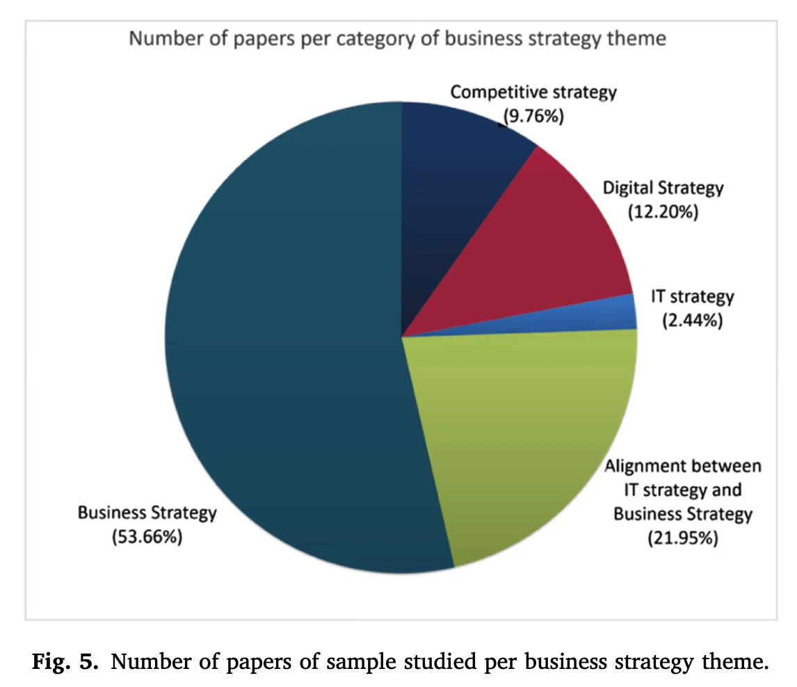 Although providing contributions such as the current state of the literature and future research directions about the addressed theme, this paper also presents some limitations. The research was performed using terms related to business strategy or IT strategy, not specifying other business strategy dimensions, such as operational strategy and financial strategy. Future studies may extend the search string to incorporate these perspectives.