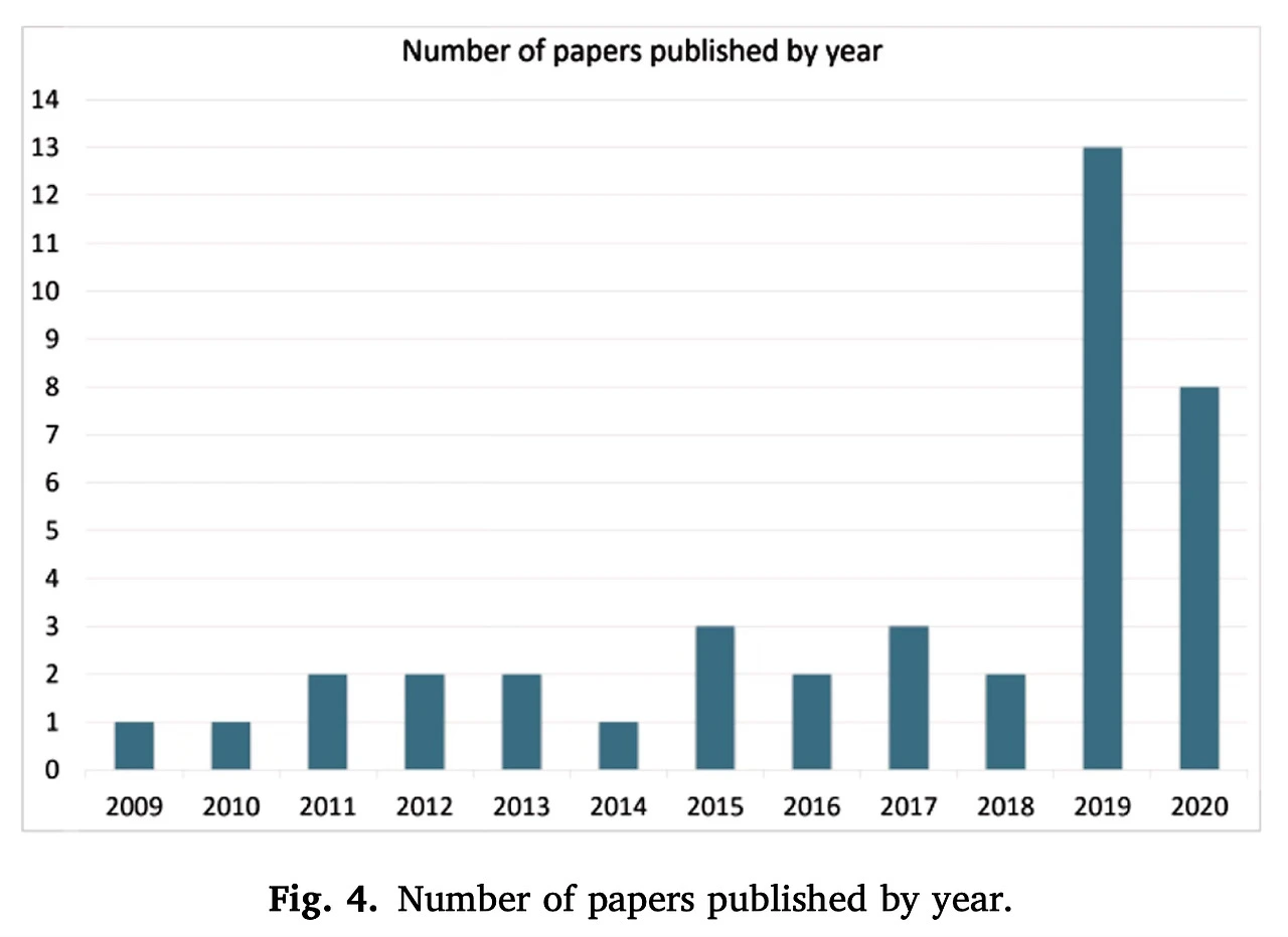 또한, 정보 관리(Pandl, Thiebes, Schmidt-Kraepelin, & Sunyaev, 2020; Zhu, Zhang, & Sun, 2019); 의사결정 (Duan, Xiu, & Yao, 2019; Ding et al., 2020); 지속 가능한 성과 평가 (Souza, Francisco, Piekarski, Prado, & Oliveira, 2019); 그리고 미래의 직업(Wang & Siau, 2019)을 다루는 조직적 관점에서 AI에 대한 문헌을 검토한 연구는 거의 없다.
