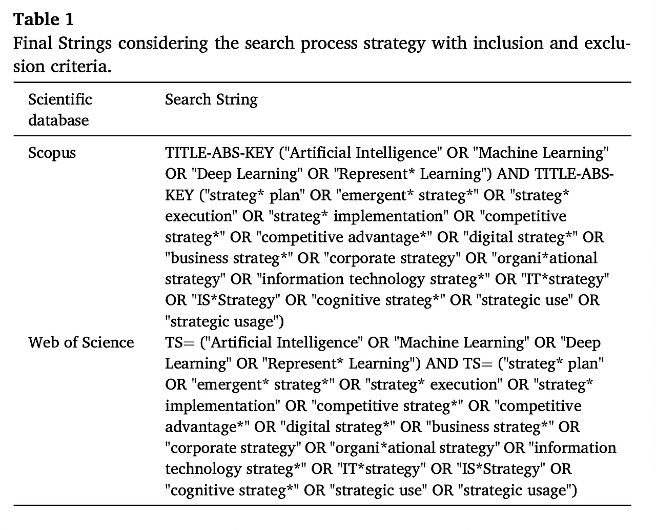 Therefore, this article attempts to address the above research gaps by examining the intersection of the literature about artificial intelligence and business strategy, through a systematic literature review.