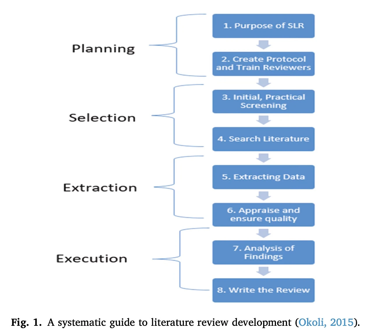 체계적 문헌 검토(SLR)는 “특정 연구 질문, 주제 영역, 또는 관심 현상과 관련된 모든 이용 가능한 연구를 식별, 평가 및 해석하는 방법”으로 정의된다 (Kitchenham, 2004).