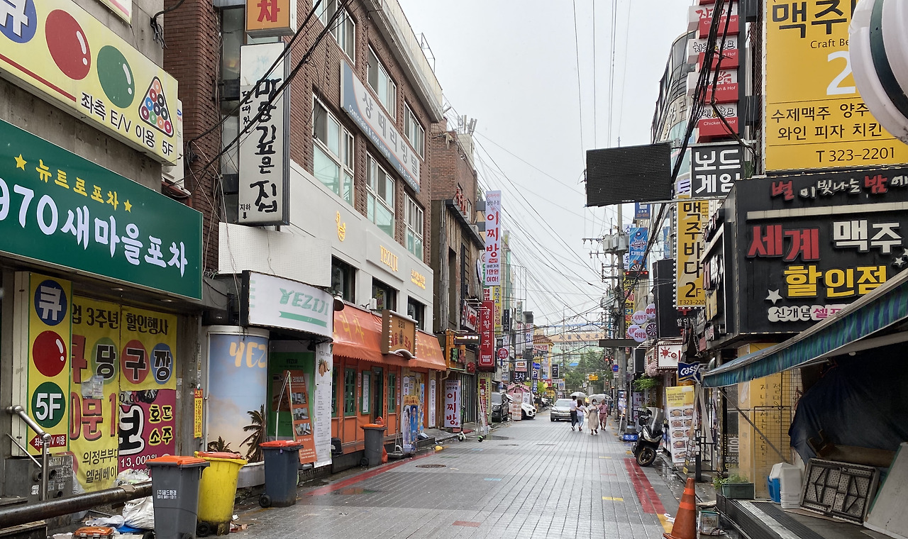 입학 전에 그 대학교를 몇 번 드나들면서, 학교 앞에 상업 시설 하나 없고 참 깨끗하다고, 진정한 학문의 전당인가 보다고 생각했는데, 난 정말 아무것도 모르는 십대 소녀였다. 굴다리를 지나가니 어마어마한 규모의 유흥가가 나왔다. 메인 도로 양쪽으로 격자형 골목들이 사방으로 뻗어나갔고 건물마다 단 한 군데의 빈틈도 없이 빽빽히 술집이 들어차 있었다. 지금은 서울 시내 유흥가들이 많이 한산해졌고 빈 가게도 많아졌지만 그때는 전혀 그렇지 않았다.