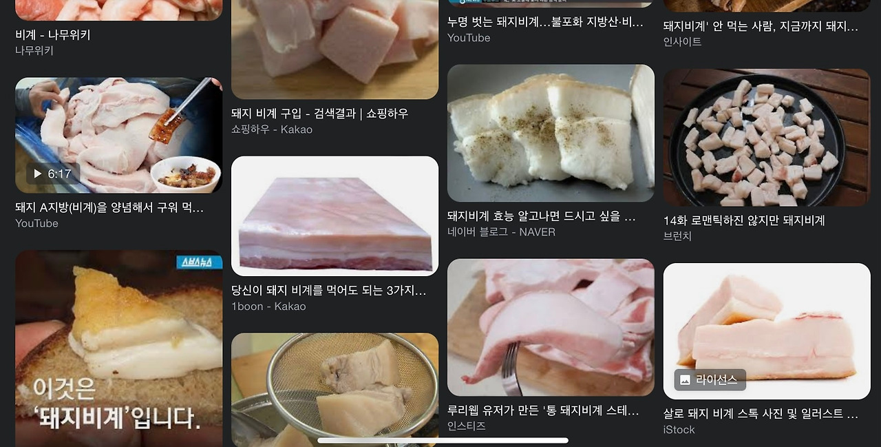 돼지 고기야 흔히 먹는 거고, 거기엔 늘 비계가 붙어 있는데, 수고스레 비계만 따로 잘라내어 모아서 요리를 만들었다는 말일까? 그렇다기엔 형태로 보나, 허술한 보관 방식으로 보나, 그냥 대충 만든 음식이었다. 난 도무지 이해가 가지 않았다. 그리고 그제야 그 물컹한 식감이 충격적으로 느껴졌다.