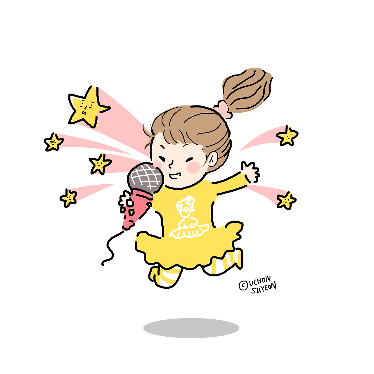 선물 받은 아이는 마이크를 들고 좋아라 방방 뜁니다.