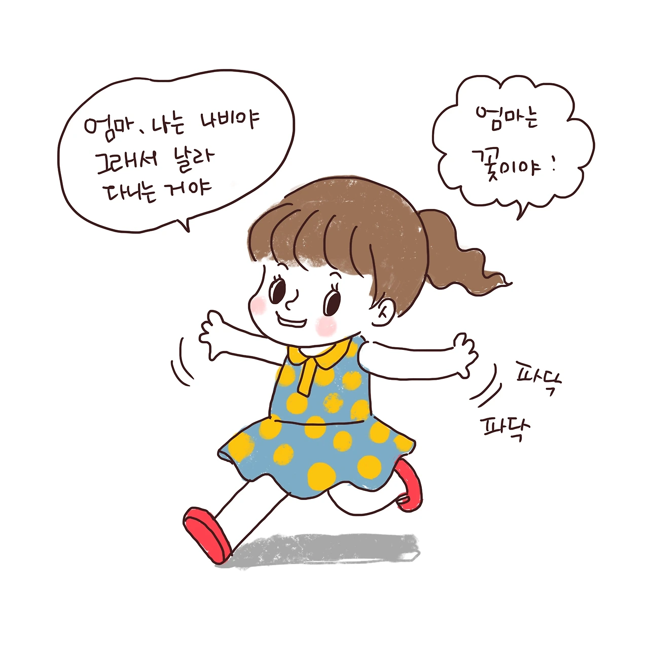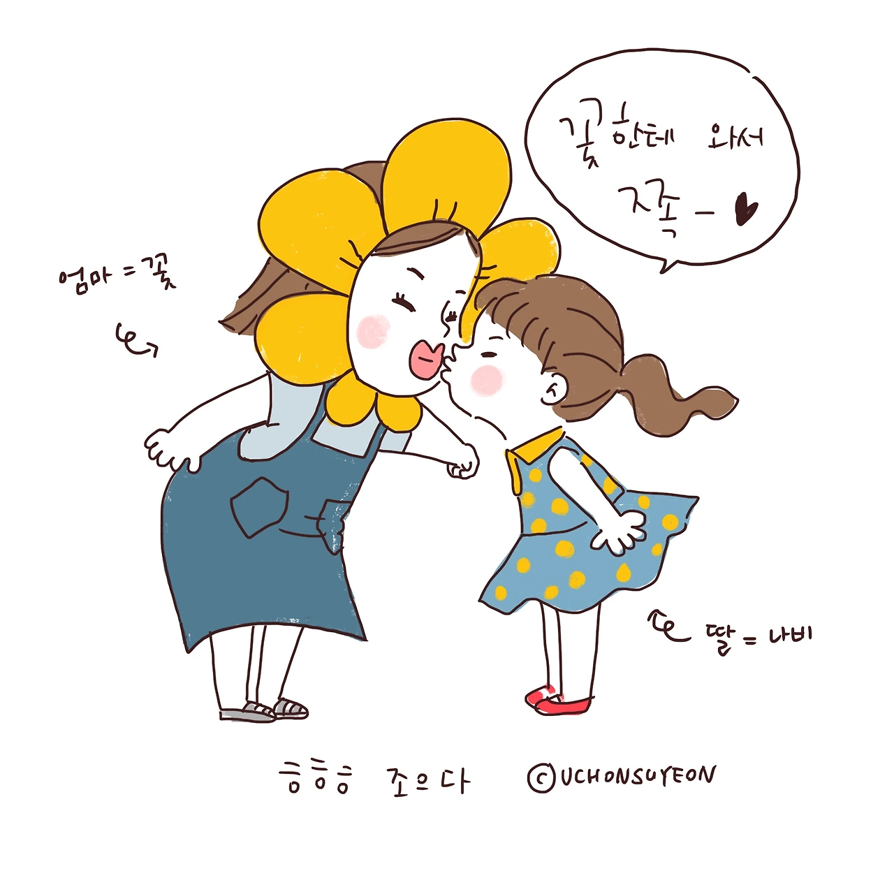 너는 나비가 되어 꽃인 나에게로 와 뽀뽀를 해주고 날라간다.