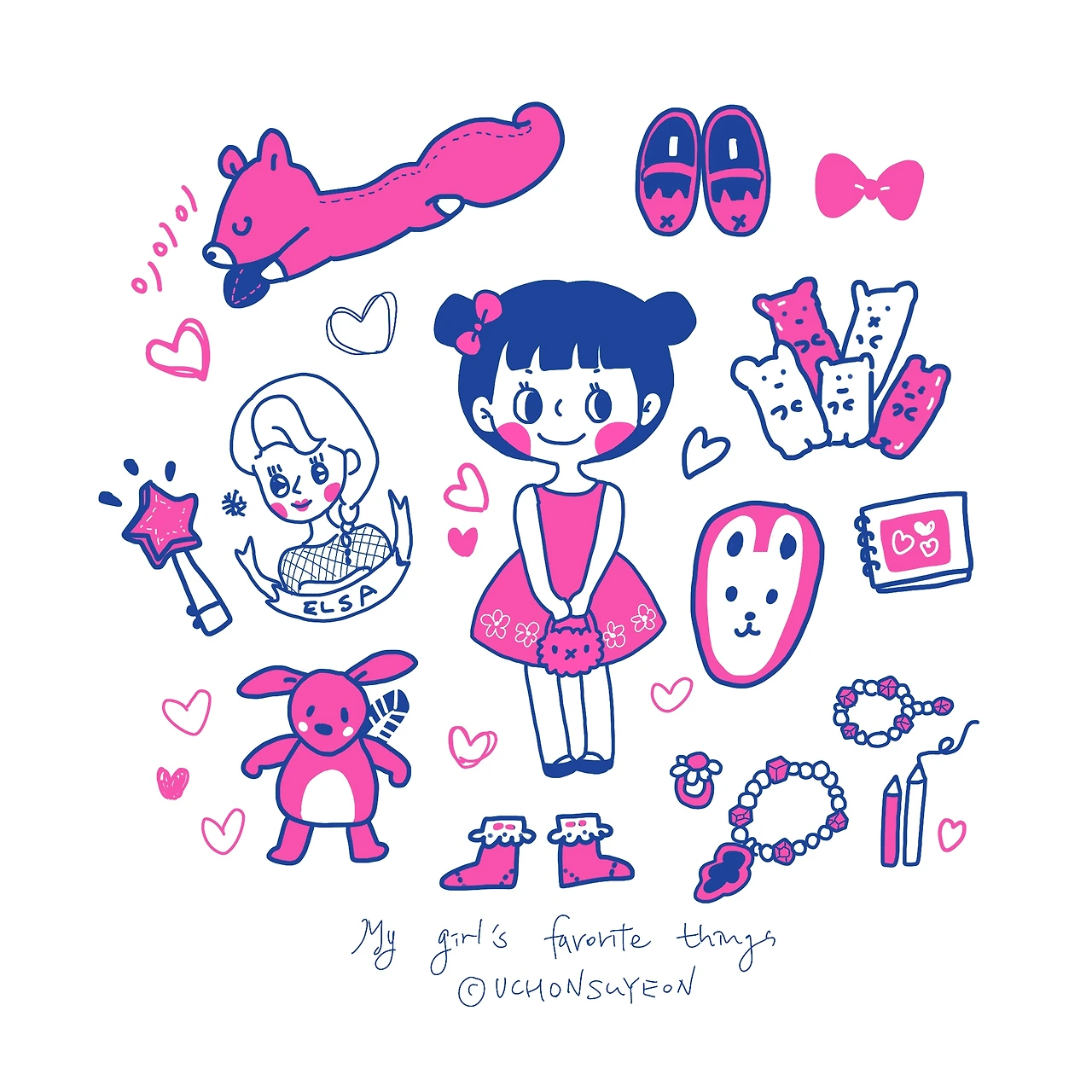 딱 핑크공주나이라 핑크색이 절대적으로 많고요, 사랑스러운 물건들을 좋아하답니다. 그림그리는 것도 상당히 좋아해요. ^^