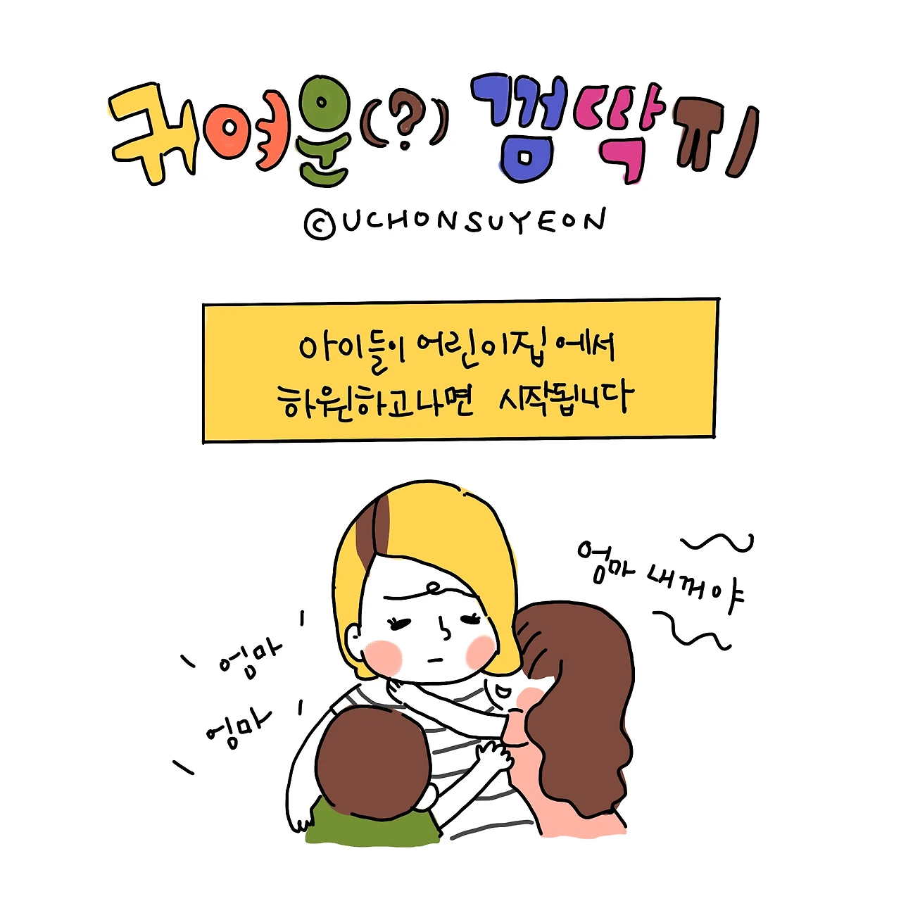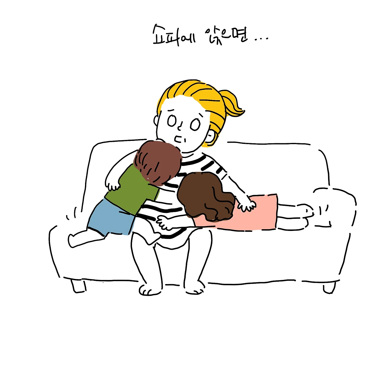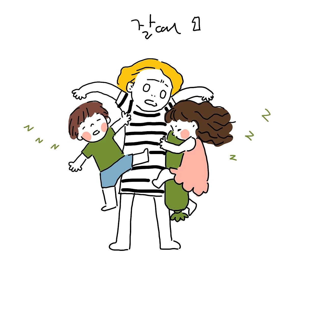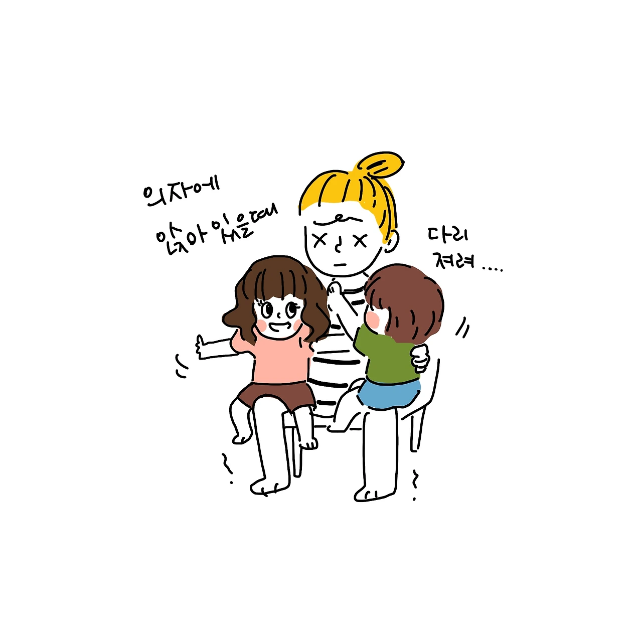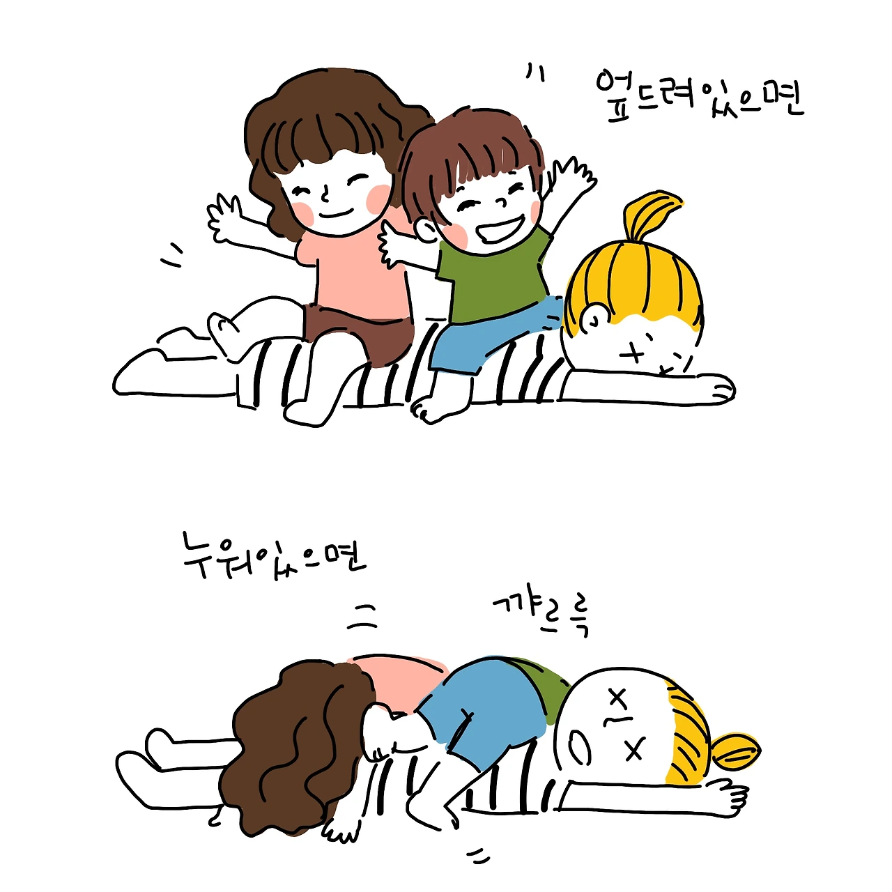 하아.. 뭘해도 아무것도 안해도 피곤한 이유가 여기에 있습니다. 귀여운 껌딱지들.. 흑흑. 특히 둘째는 어부바에 꽂혀서 등에 종종 메달려있어요. 힘조절 못하는 힘쎈 둘째는 어부바하면서 엄마 목을 조른답니다. ㅜㅜ)