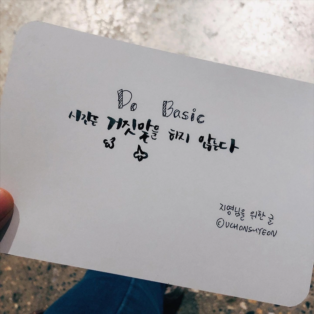 @다재다능르코 님을 만났어요 멋진 사람을 만나는 건 늘 즐거운 일이지요. 선물로 손글씨카드를 만들었어요. 각자의 다른 명언이나 중요문구를 적노라면 견문이 넓어지는 느낌이 듭니다. 열심히 사는 다른 분들의 죄우명에 고객을 끄덕끄덕