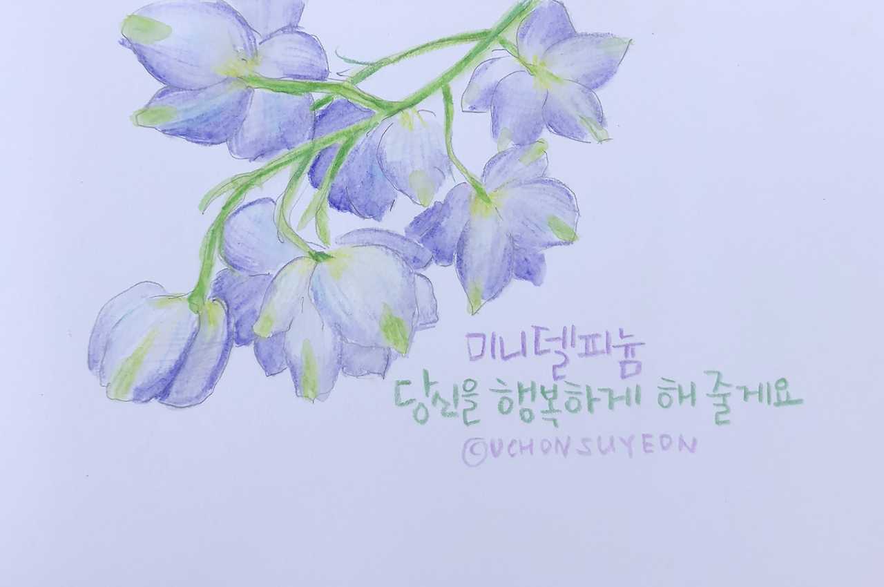 미니 댈피늄은 혹시 행복이란 단어의 꽃말이 있을까 찾아보다 만나 꽃이예요. 청혼때 많이 선물한다고 하네요. 겹꽃류를 좋아하는데 꽃모양이 꽃말처럼 굉장히 낭만적이예요.