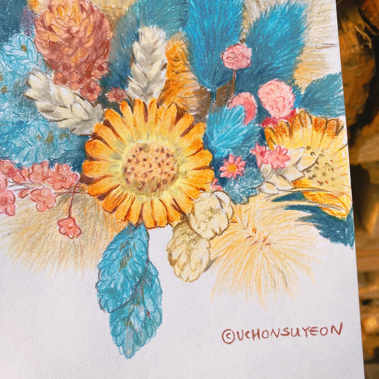 원래의 색상은 이보다는 푸른빛이 강한데요. 노을빛이 스며드니 다소 부드러운 인상의 그림이 되었어요.